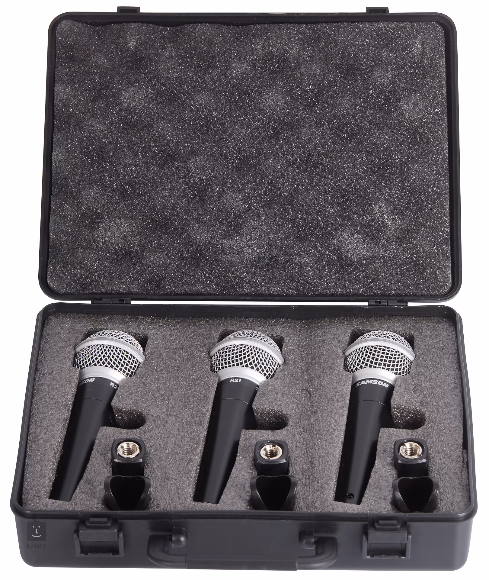 Dynamisches Mikrofon-Set, Einsatz: Bühnengesang und Instrumentenabnahme, hohe Ausgangsverstärkung, enge Richtcharakteristik mit Nierencharakteristik für maximale Verstärkung vor Rückkopplung, vergoldeter XLR-Stecker, Mikrofonkoffer und -halter, Preis für 3er Pack