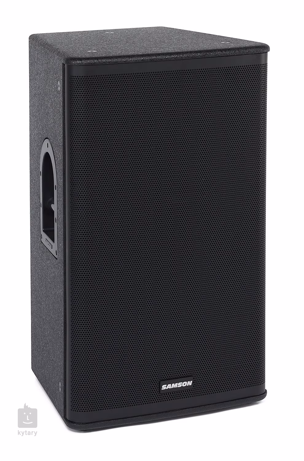 Die hochwertige Holzkonstruktion mit strukturierter Oberfläche ermöglicht einen sicheren Transport, während die gummierten Handgriffe an den Seiten einen bequemen Transfer zwischen dem Wagen und der Bühne gewährleisten. Sie können den Lautsprecher auf den Boden stellen, die abgeschrägte Form für einen Abhörmonitor nutzen oder ihn auf einen Ständer stellen. Der Lautsprecher bietet außerdem zwölf Gewinde für das M10-Aufhängungssystem.