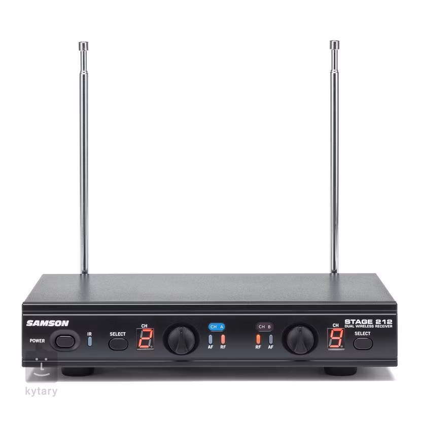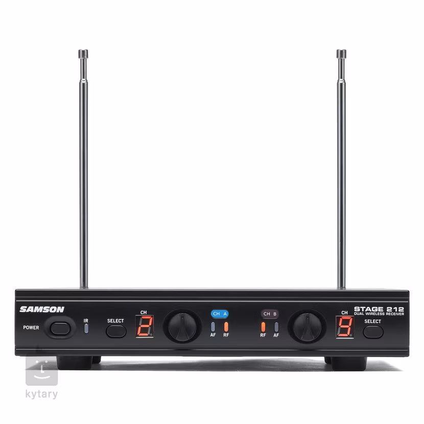 Samson Stage 212 bietet 12 abstimmbare Frequenzen im Bereich von 173MHz-198MHz. Die Frequenzabstimmung zwischen Sender und Empfänger erfolgt über einen IR-Strahl. Das Stage 212 System bietet eine Signalübertragung über Distanzen von bis zu 60m. Der Sender wird mit einem Paar AA-Batterien betrieben, die bis zu 10 Stunden Betriebszeit ermöglichen.