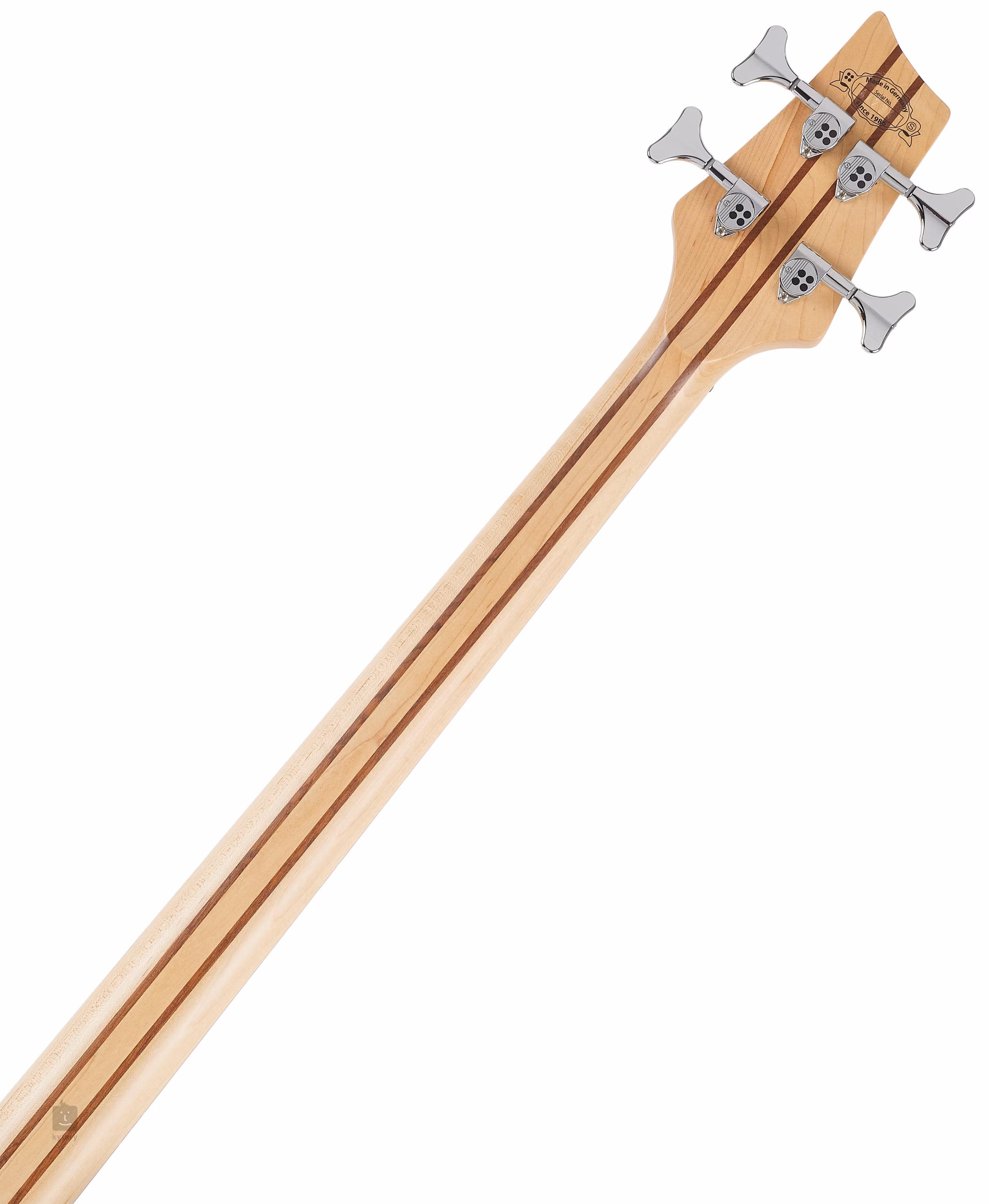 Für eine stabile Stimmung sorgen die Verankerung der Saiten im massiven Griffbrett und die verchromten Mechaniken des Herstellers. Der Bass wird in einem hochwertigen Gigbag geliefert.