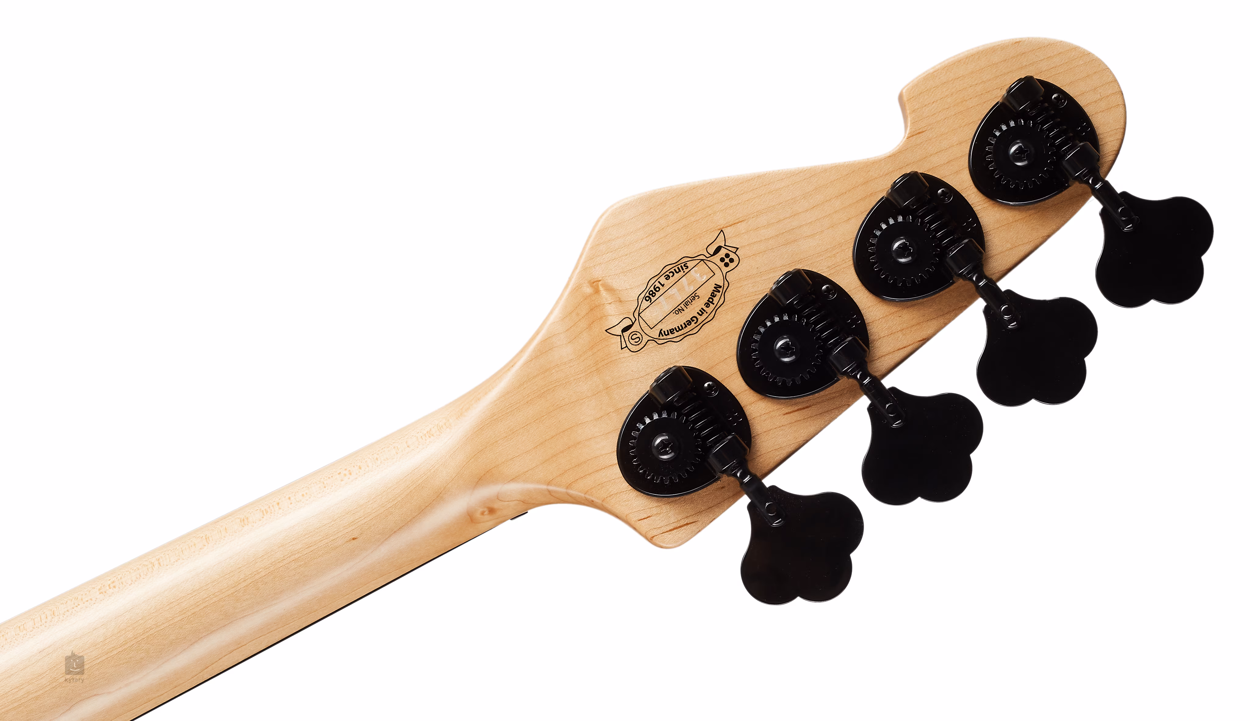 Der Korpus dieses Basses ist aus bewährter Esche gefertigt, der Hals aus kanadischem Ahorn. Er ist mit sechs Schrauben verschraubt, die ihn in einer absolut exakten Position halten. Für das Griffbrett wurde Ebenholz verwendet, der Bass ist natürlich bundlos, aber mit markierten Führungslinien zur einfachen Orientierung. Die Mensur des Instruments beträgt 864 Millimeter.