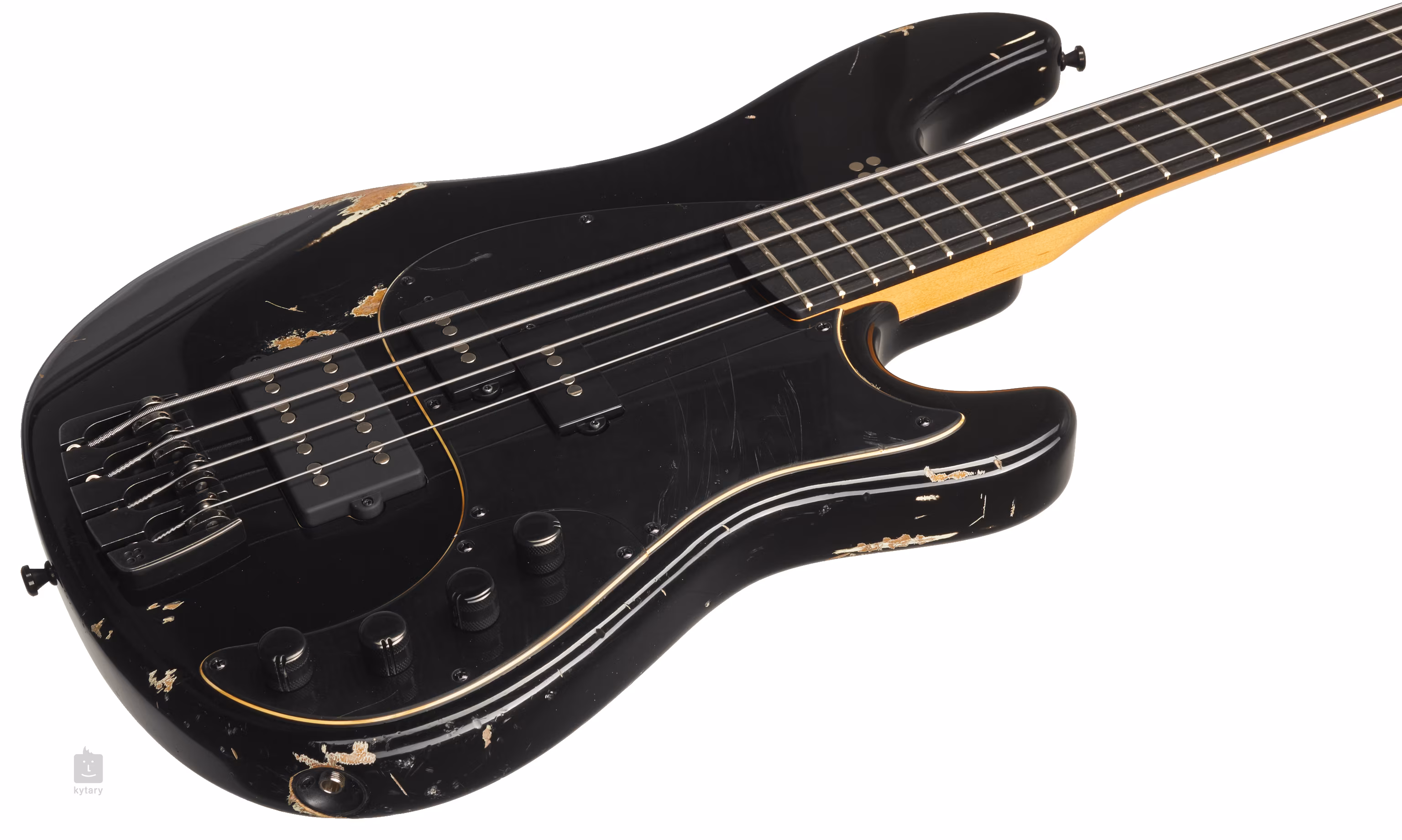 Der Korpus dieses Basses besteht aus hochwertiger Erle, während der Hals aus kanadischem Ahorn gefertigt ist. Er ist mit sechs Schrauben verschraubt, die ihn in einer absolut exakten Position halten. Das Griffbrett ist aus Ebenholz und hat 22 Bünde. Die Mensur des Instruments beträgt 864 Millimeter. Der gesamte Bass ist in Special Hardcore Aged lackiert, was ihn so aussehen lässt, als hätte er mindestens ein Jahrzehnt auf einer strengen Tour verbracht. Die schwarze Lackierung der Kopfplatte rundet das Gesamtdesign ab.
