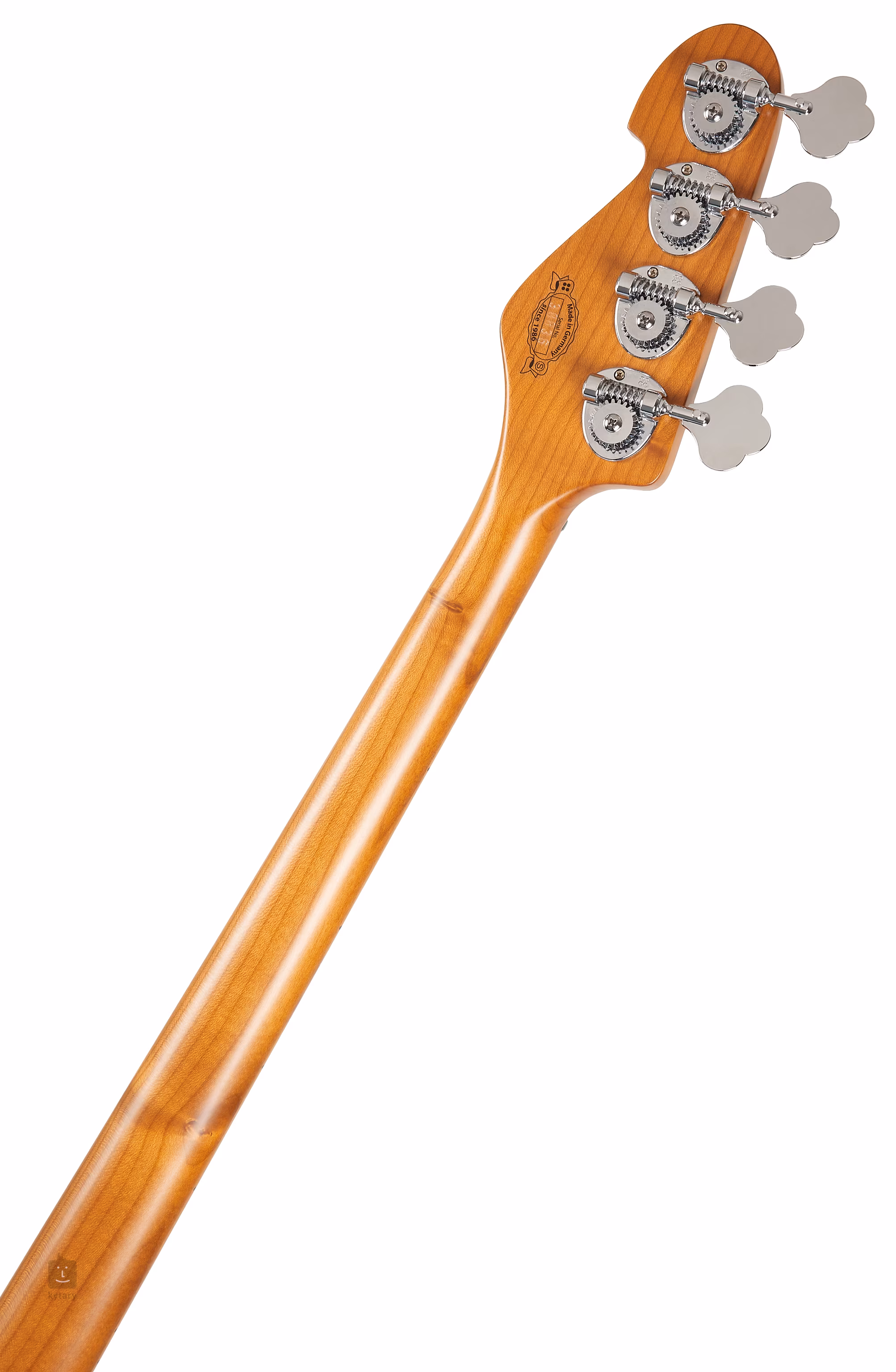 Der Korpus dieses Basses besteht aus hochwertiger europäischer Esche, während Hals und Griffbrett aus kanadischem Ahorn in einem gerösteten Finish gefertigt sind, das nicht nur durch sein außergewöhnliches Design, sondern auch durch seine hervorragenden Klangeigenschaften besticht. Der Hals ist mit sechs Schrauben mit dem Korpus verschraubt, die ihn in einer absolut präzisen Position halten. Die Mensur des Instruments beträgt 864 Millimeter.