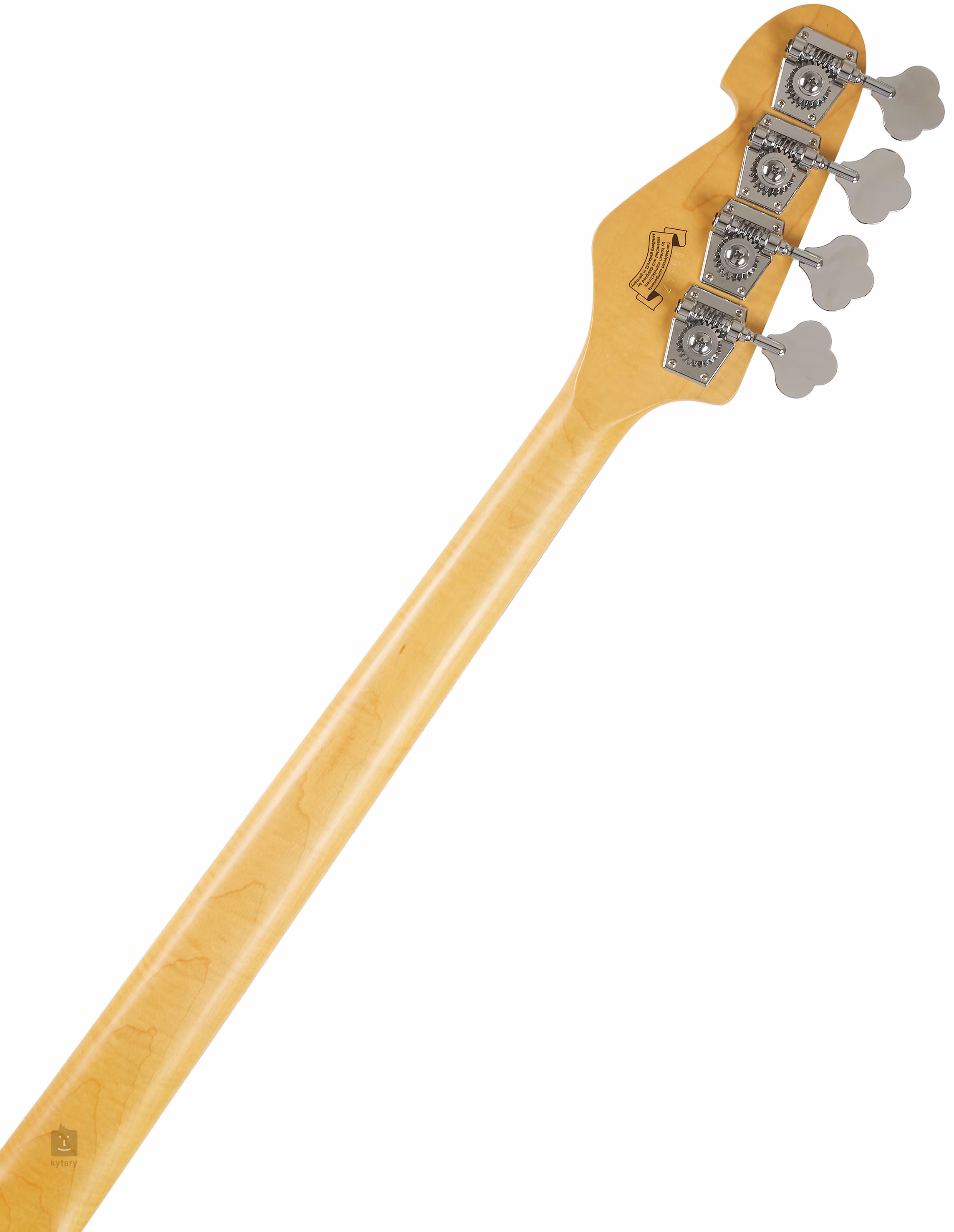 Der Korpus dieses Basses ist aus bewährter Linde gefertigt, der Hals ist aus kanadischem Ahorn gedrechselt. Er ist mit sechs Schrauben verschraubt, die ihn in einer absolut exakten Position halten. Das Griffbrett ist aus Palisander und verfügt über 22 Bünde. Das Instrument hat eine Mensur von 864 Millimetern.