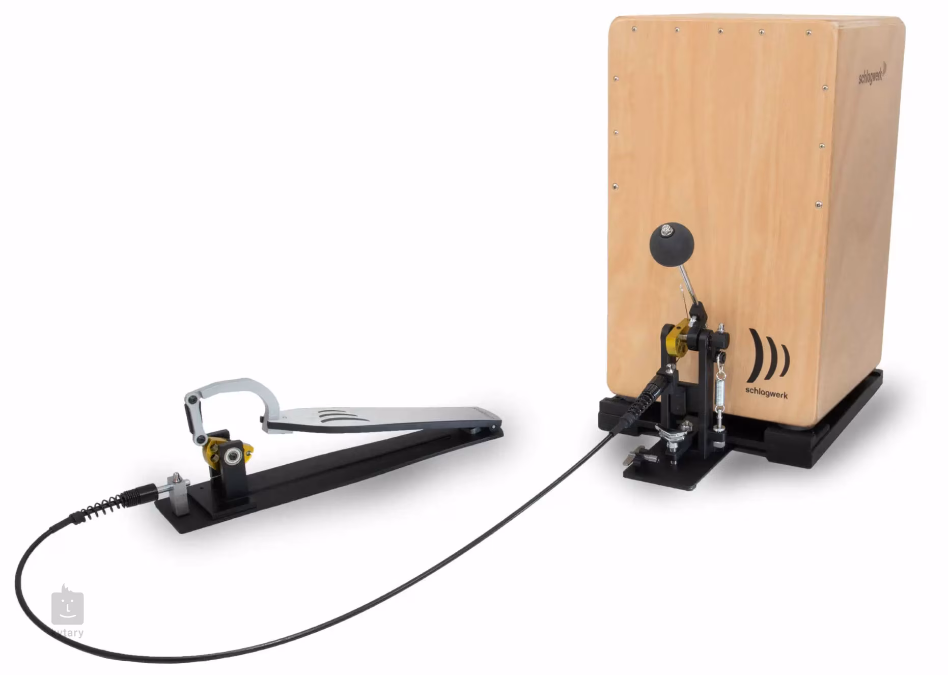 CAP200 Cajon-Pedal mit Stahlkabel und Teflon-Finish, Longboard-Pedal-Design, Doppelnocken-Konstruktion für perfektes Spielgefühl und optimale Einstellung der Beater-Position. Das Pedal wird in einer praktischen Verpackung geliefert.