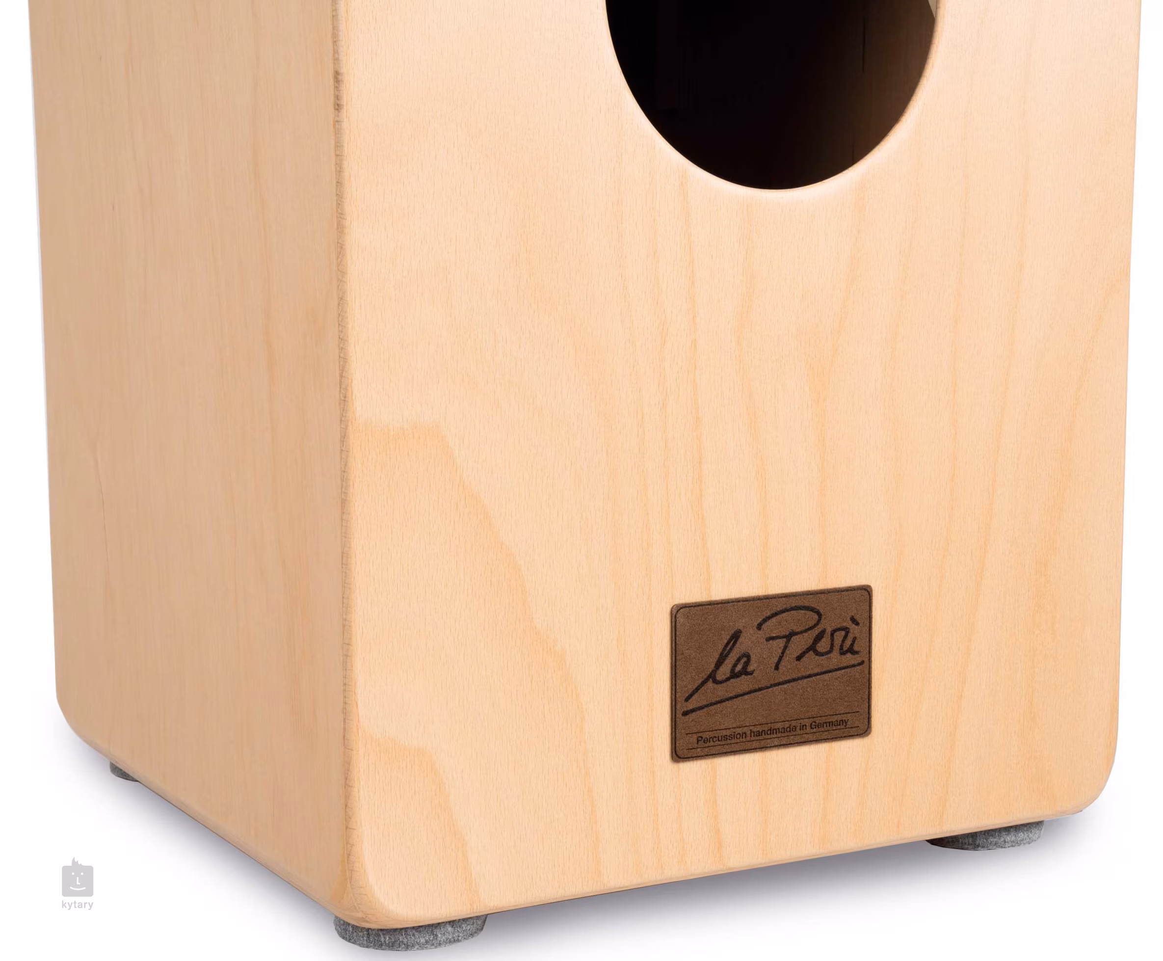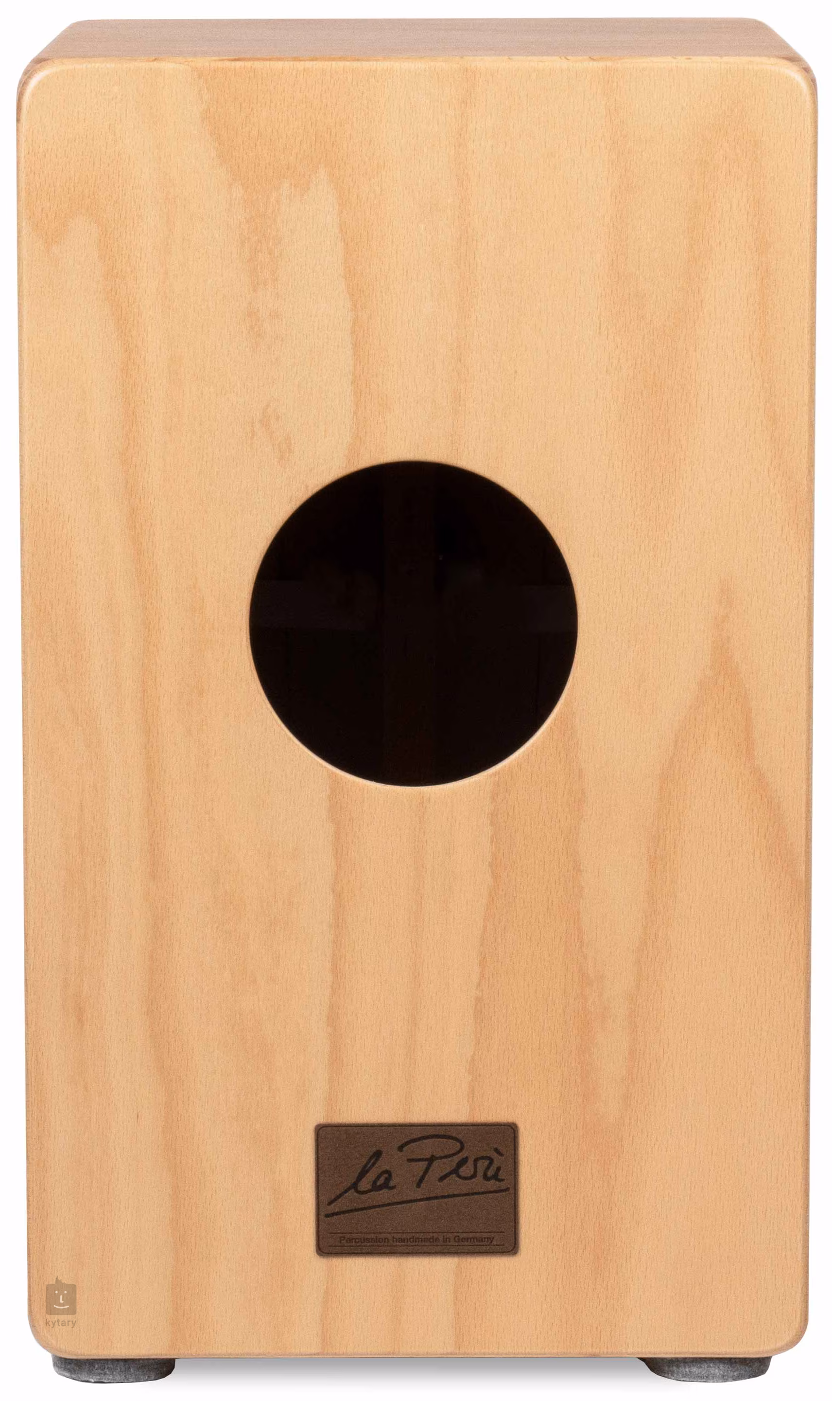 Dieses Cajon verfügt über eine Spielfläche aus Holzfurnier und einen Resonanzkasten aus sieben Schichten Erle. Es ist mit 2 x 2 La Per? Snare-Saiten und hat die Maße von ca. 30 x 30 x 50 cm.