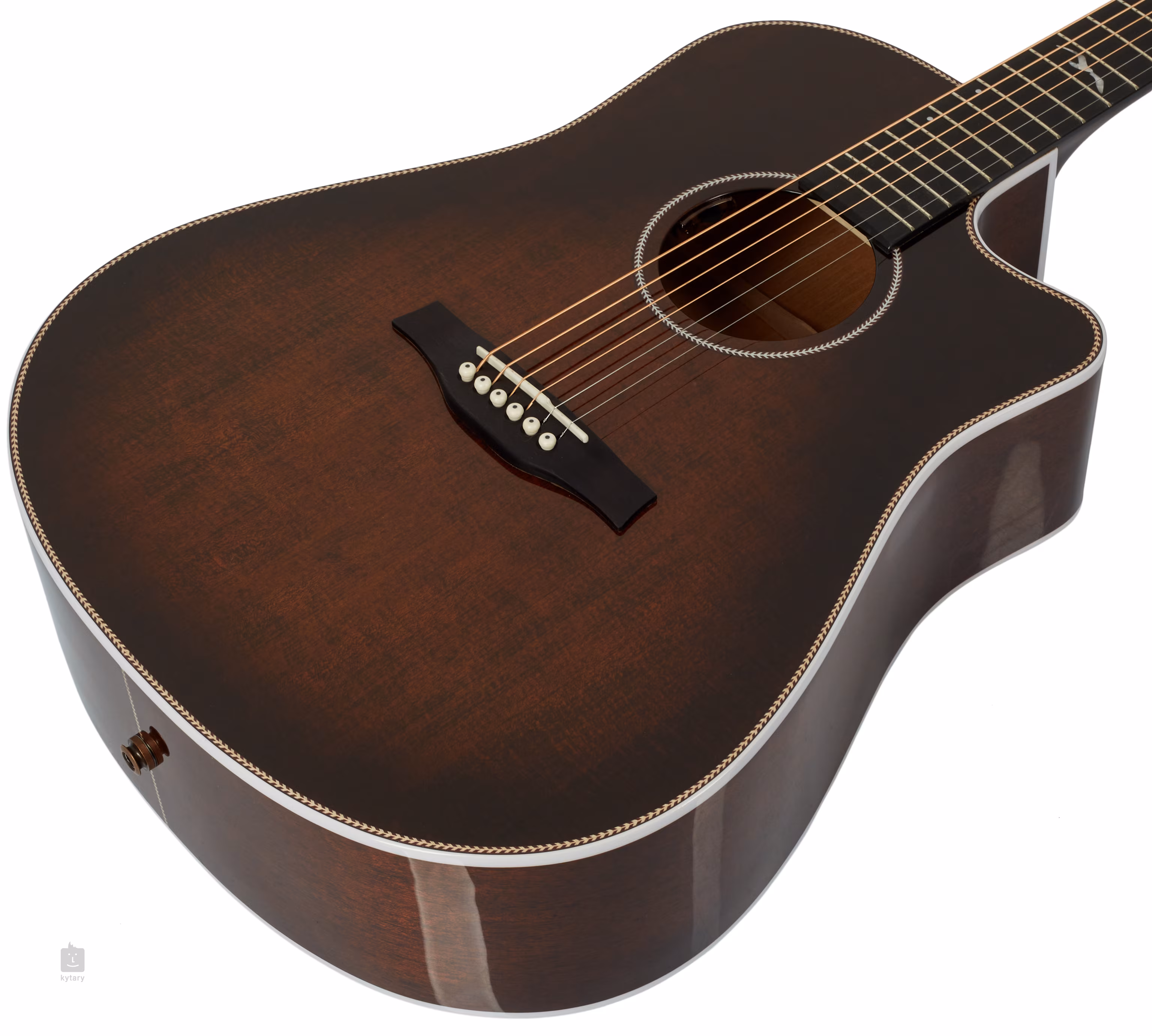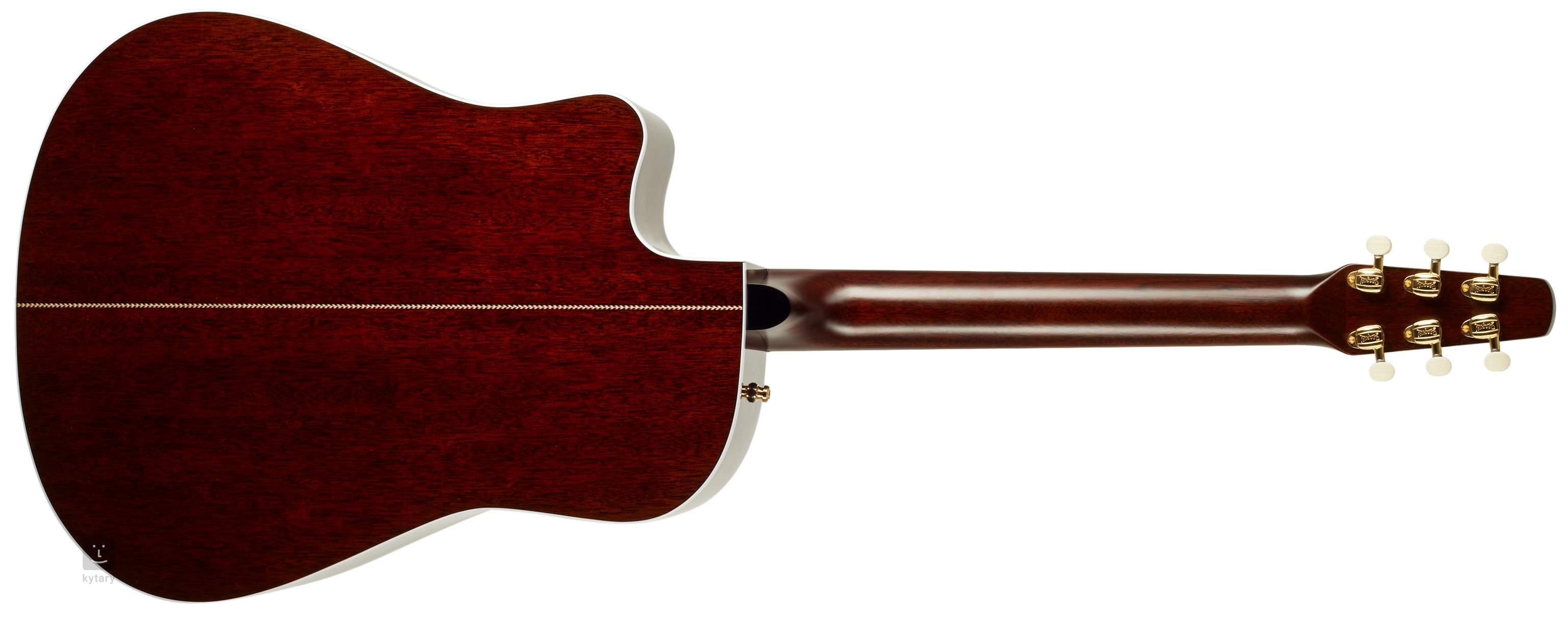Der Klang wird mit einem Tru-Mic-System mit einem Element-Subcoil-Tonabnehmer, einem Mikrofon und einem L.R. Baggs Anthem-Vorverstärker im Schallloch der Gitarre eingefangen. Die Stimmstabilität wird durch geschlossene, vergoldete Mechaniken mit weißen Wirbeln gewährleistet. Das stilvolle Design des Instruments wird durch die doppelseitige weiße Korpusverkleidung mit Fischgrätenmotiv, die dekorative Rosette, die Verkleidung des Mittelrückens und das Logo sowie das Perlmuttmotiv auf der Kopfplatte unterstrichen. Das Instrument wird in einem hochwertigen Softcase (Tric Case Multifit Deluxe) geliefert.