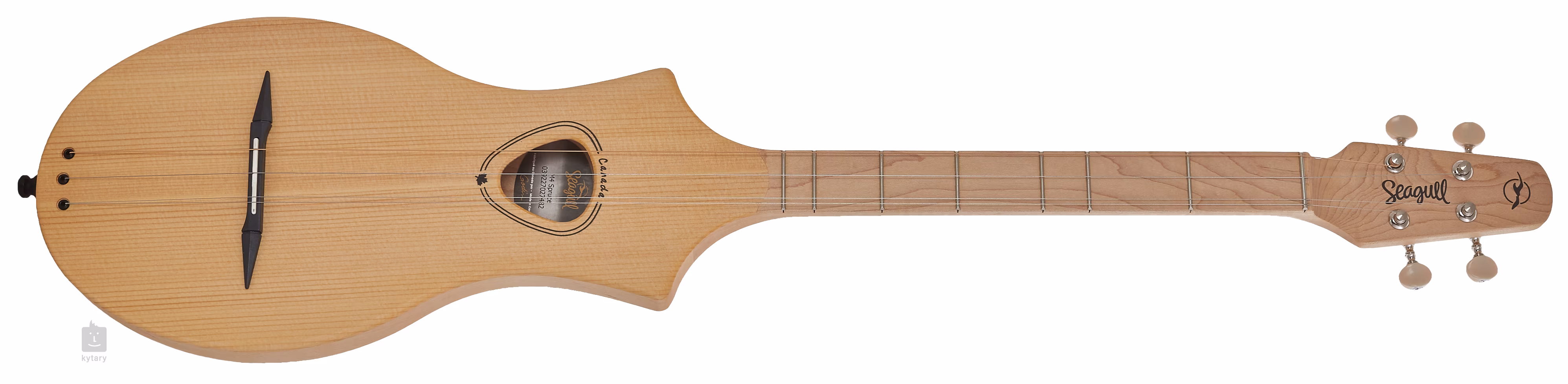Der Korpus dieses 4-saitigen diatonischen Instruments besteht aus einer Fichtendecke und einem Ahornboden. Der Hals ist ebenfalls aus Ahorn. Der Nullbund ist 32,5 Millimeter breit und es gibt nur 7 Bünde auf dem Griffbrett. Die Saiten sind DADD gestimmt.