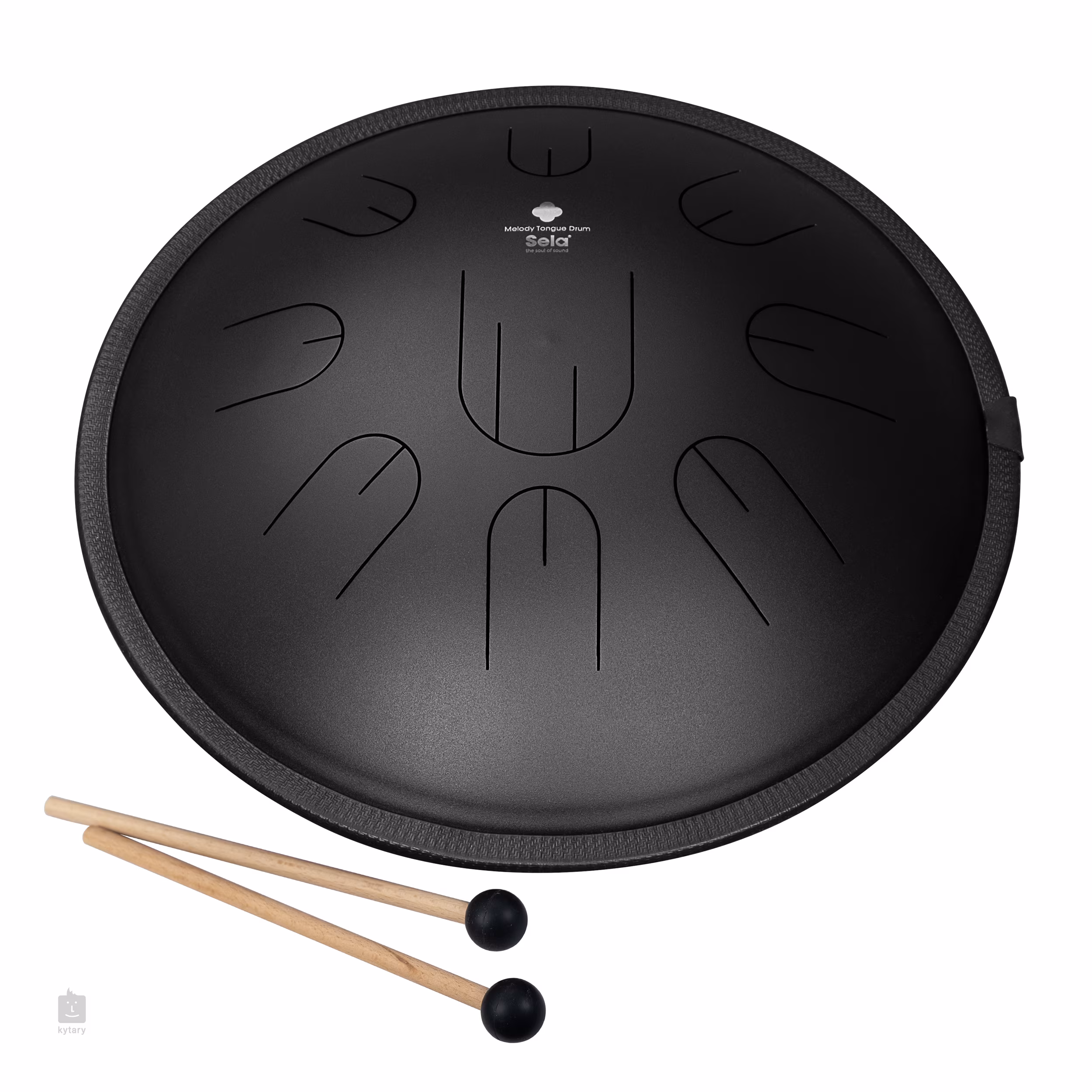 Die 14" Melody Tongue Drum D Kurd Black (SE 380) ist in der D-Kurd-Skala mit den Tönen D3, A3, Bb3, C4, D4, E4, F4, G4 und A4 gestimmt, inklusive Drumsticks und Koffer.