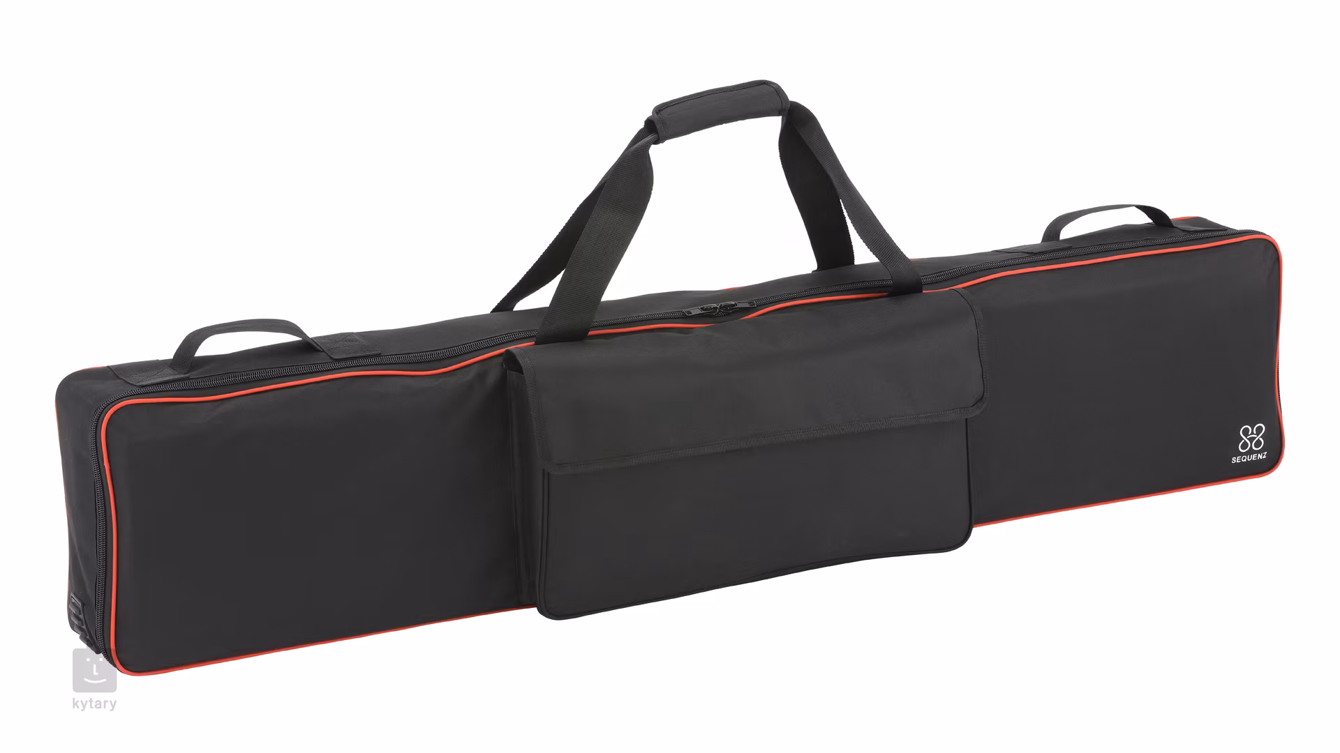 Weiches Etui für das Korg D1-Digitalpiano. Der Griff ist gepolstert, um die Hand oder die Schulter beim Tragen zu entlasten, und es gibt auch Griffe an den Seiten, die das Tragen für zwei Personen erleichtern. Ein Ständer für Noten oder anderes Zubehör passt dann bequem in die zentrale Reißverschlusstasche.