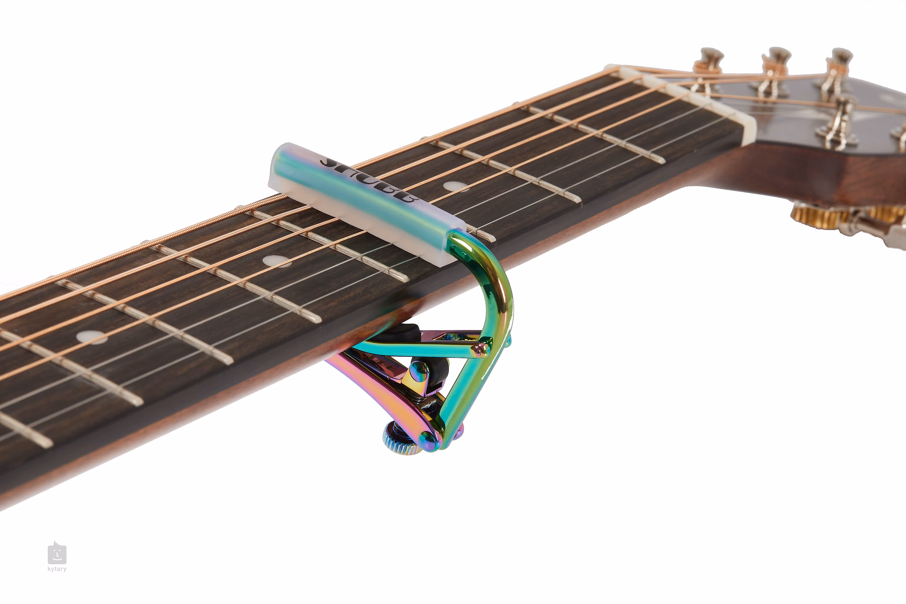 Es handelt sich um einen Kapodaster mit einem für Shubb typischen Design, das Einfachheit mit hoher Zuverlässigkeit und Funktionalität verbindet. Er besteht aus haltbarem, vernickeltem Messing, die Saiten werden von einem hochwertigen Vollgummi gehalten, der sich wie der Bauch eines Fingers verhält - er drückt die Saiten nicht aus der Achse, sondern überträgt gleichmäßige Spannung auf sie und die Saiten halten die Stimmung wunderbar. Darüber hinaus kann die Spannung mit der einstellbaren Druckfunktion frei eingestellt werden. Dank der ausgeklügelten Form der einzelnen Komponenten lassen sich die Kapodaster leicht auf- und absetzen und können zudem an jeder beliebigen Stelle des Halses leicht positioniert werden.