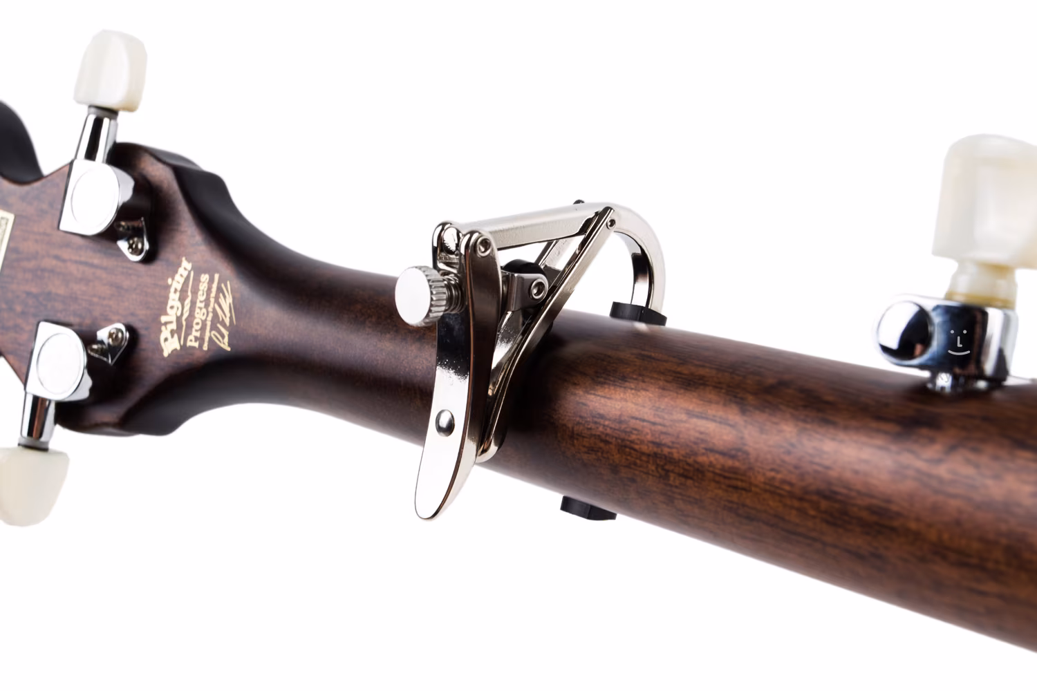 Es handelt sich um ein Kapodaster mit einem für Shubb typischen Design, das Einfachheit mit hoher Zuverlässigkeit und Funktionalität verbindet. Er besteht aus haltbarem, vernickeltem Messing, das ein Leben lang hält, die Saiten werden von einem hochwertigen Vollgummi gehalten, der auch eine Beschädigung des Halses von hinten verhindert, und der gesamte Mechanismus funktioniert dank des einstellbaren Drucks reibungslos.