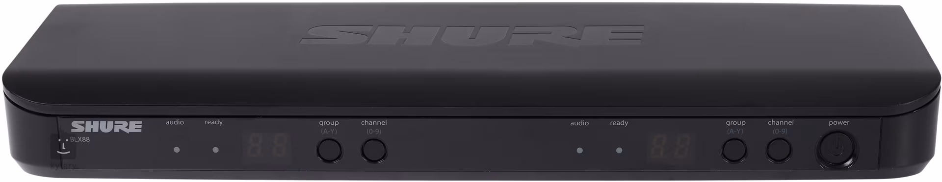 Im Lieferumfang enthalten sind ein BLX 88-Empfänger, 2x SM 58-Sender/Mikrofone und ein Netzadapter.