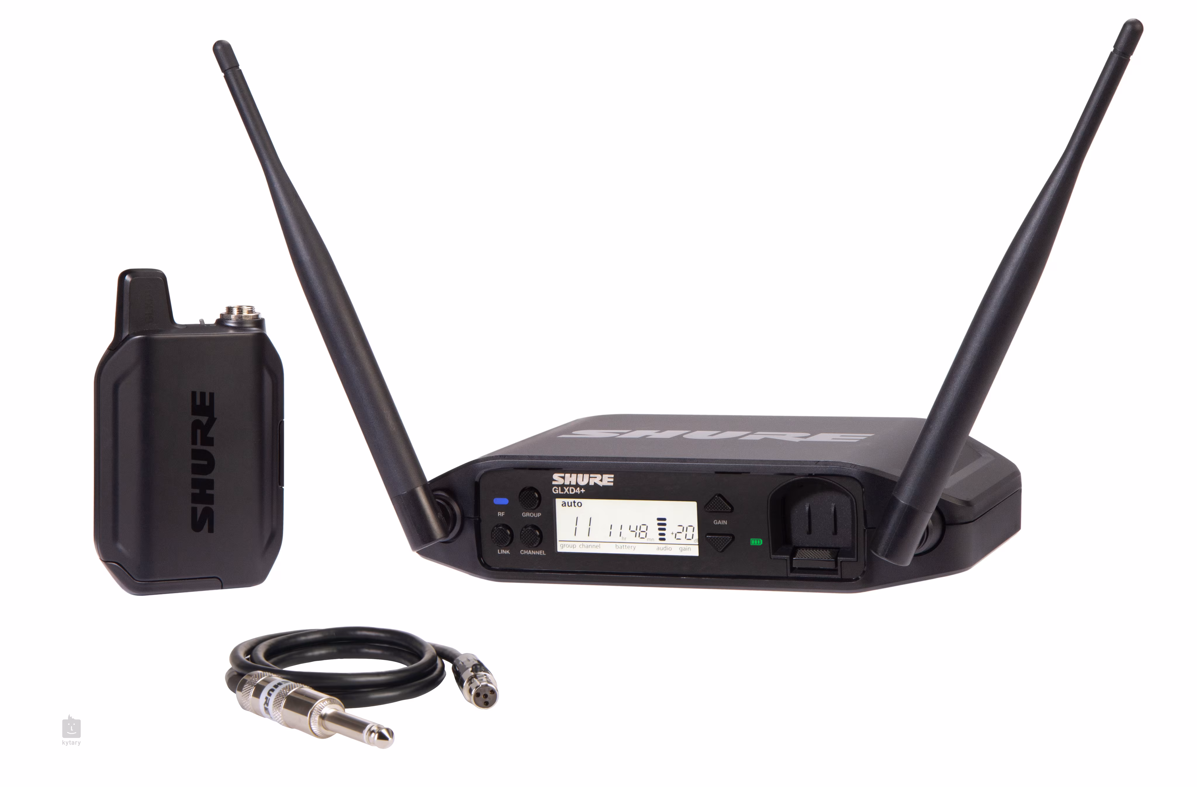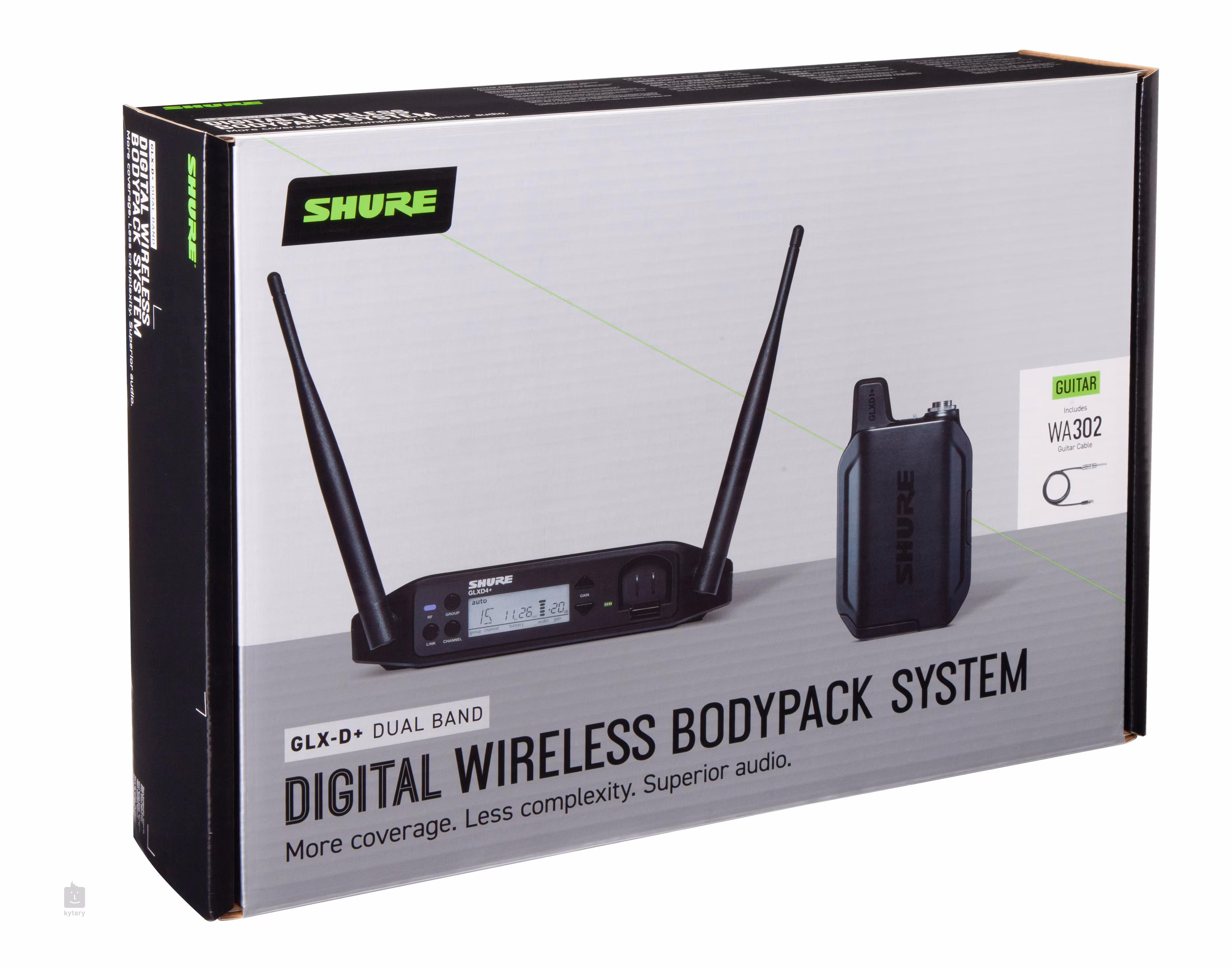 Das drahtlose GLXD14+ BODYPACK SYSTEM Set besteht aus dem Gitarrenkabel WA302, dem Taschensender GLXD1+ und dem Empfänger GLXD4+. Zum Lieferumfang gehören ein Netzteil, ein SB904 Lithium-Ionen-Akku und ein schwarzer Hartschalenkoffer.