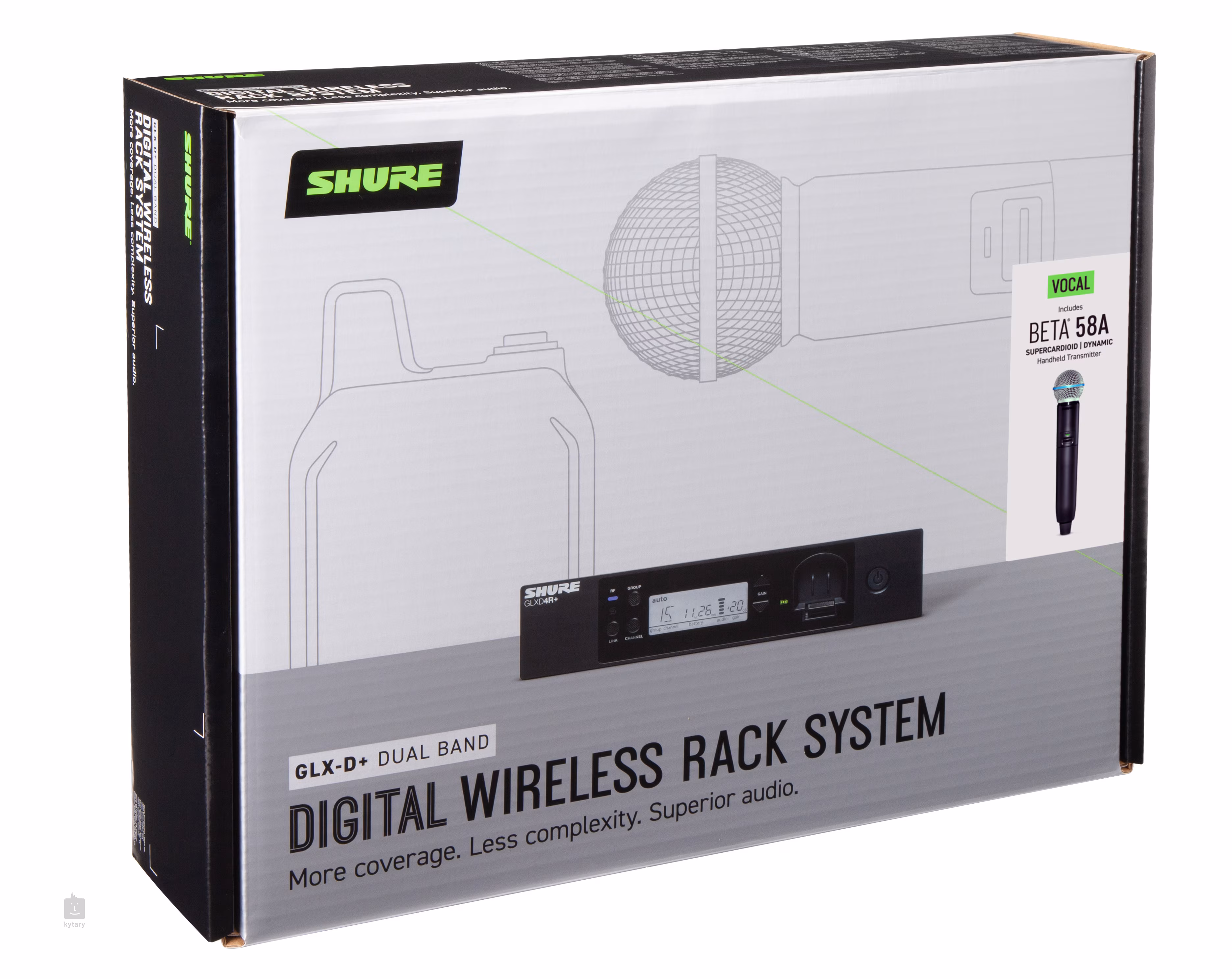 Das GLXD24R+ VOCAL SYSTEM WITH BETA58A Drahtlos-Set enthält das dynamische Gesangsmikrofon BETA58A und den GLXD4R+ Rackmount-Empfänger.