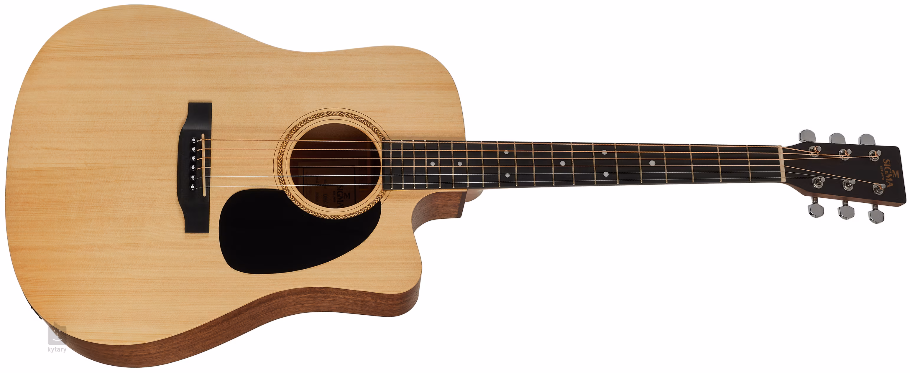 Die Vorderseite der Gitarre ist aus massiver Sitka-Fichte gefertigt, Boden und Zargen sind aus laminiertem Mahagoni. Der Korpus ist mit einer dünnen Schicht Satin-Lack überzogen. Mit ihrer bewährten Kombination aus Fichte und Mahagoni und dem ausgewogenen Verhältnis von klanglicher Klarheit und Wärme ist die Sigma DMCE eine universell gute Wahl für viele Musikstile.
