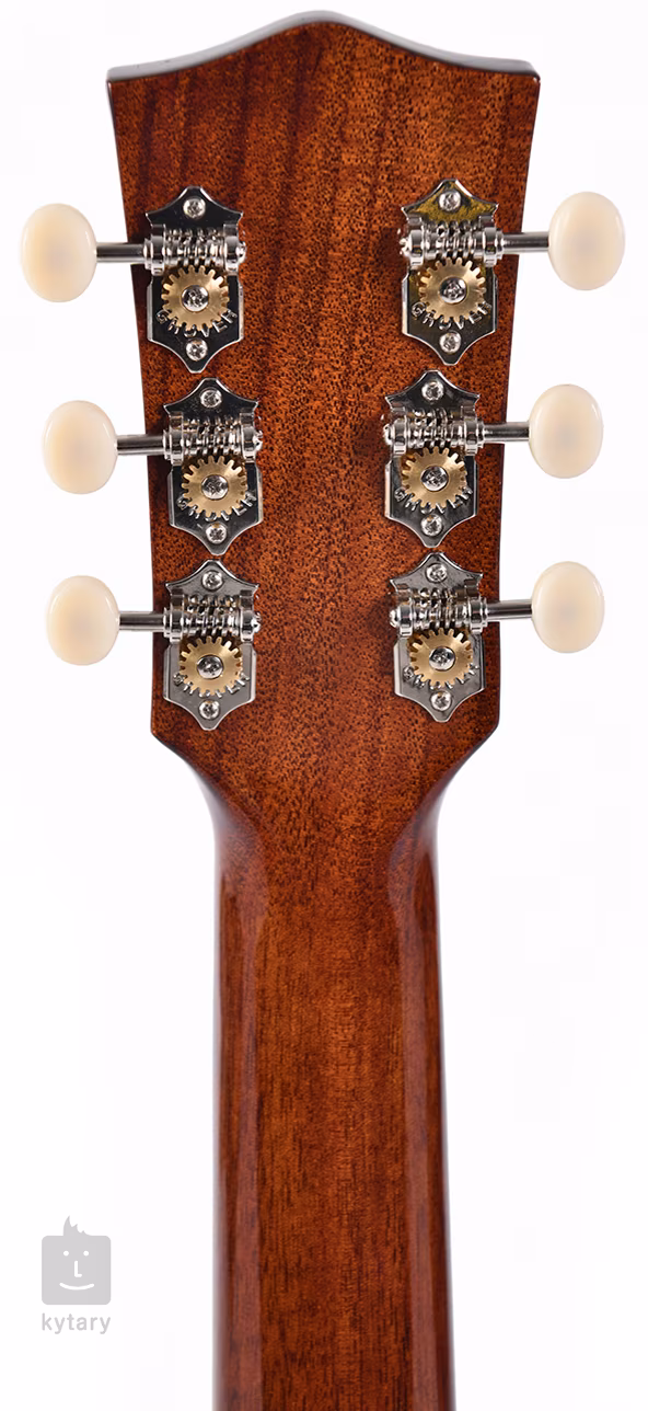 Die Saiten werden in offenen Grover-Mechaniken mit Elfenbeinwirbeln und einem Ebenholz-Griffbrett gehalten. Der Nullbund und der kompensierte Knochensattel sorgen für eine ideale Schwingungsübertragung der Saiten. Die stilvolle Verarbeitung wird durch das Sunburst-Finish der Decke, die Nickel-Hardware, das Schlagbrett aus Schildpatt-Imitat, die Korpusumrandung und die Perlmutt-Positionsmarkierungen und -Einlagen auf der Kopfplatte unterstrichen.