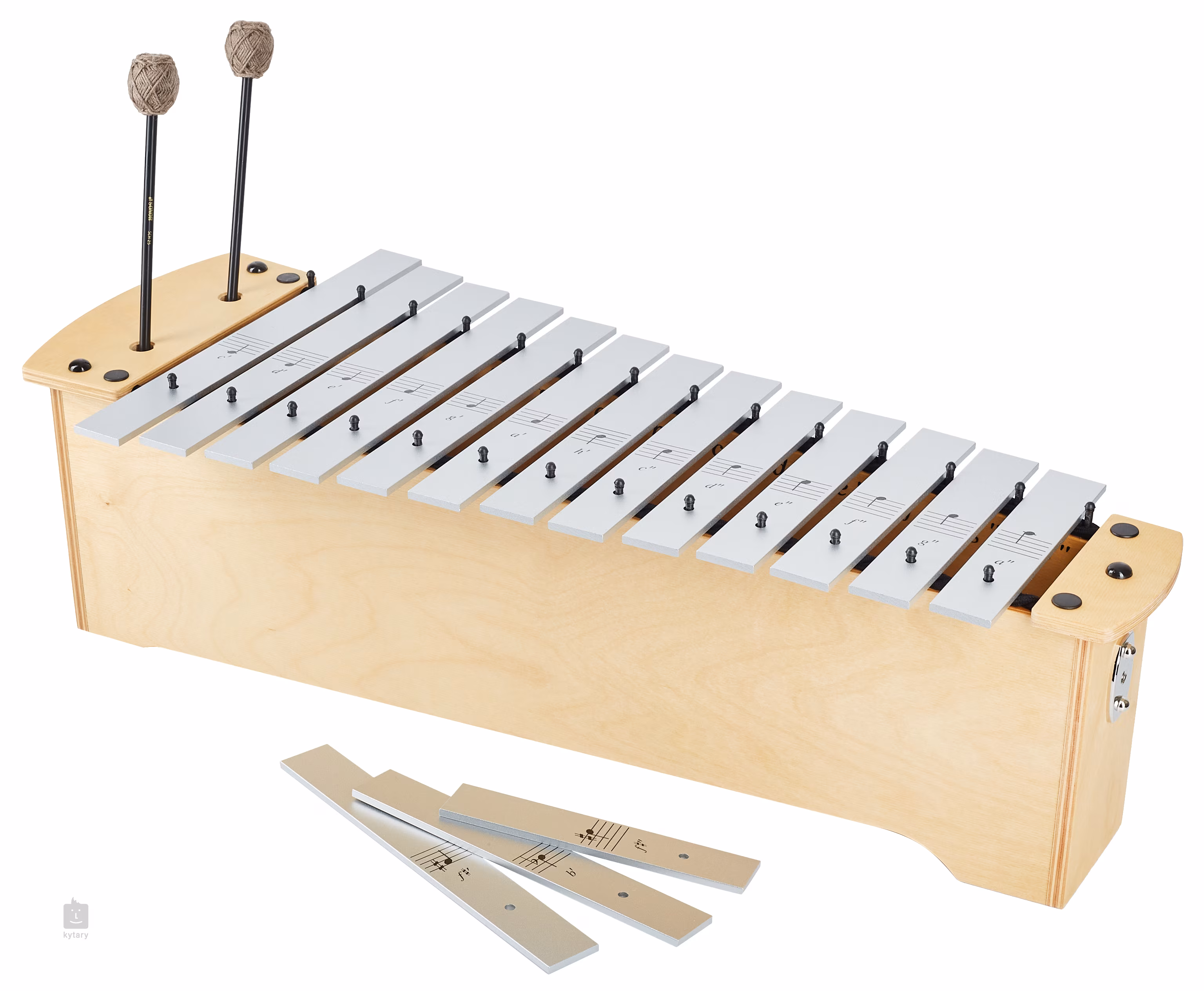 Das Metallophon ist standardmäßig von C1 bis A2 gestimmt und wird mit Schlägeln geliefert.