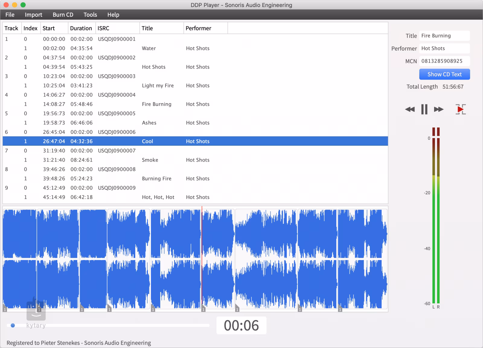 Sie können Tracks abspielen, auf Lücken hören, alle PQ-, ISRC-, MCN-Codes und CD-Textdaten anzeigen. Ein weiteres Feature ist die Funktion Check Project, die das importierte Projekt anhand einer Reihe von RedBook-Spezifikationsregeln testet.