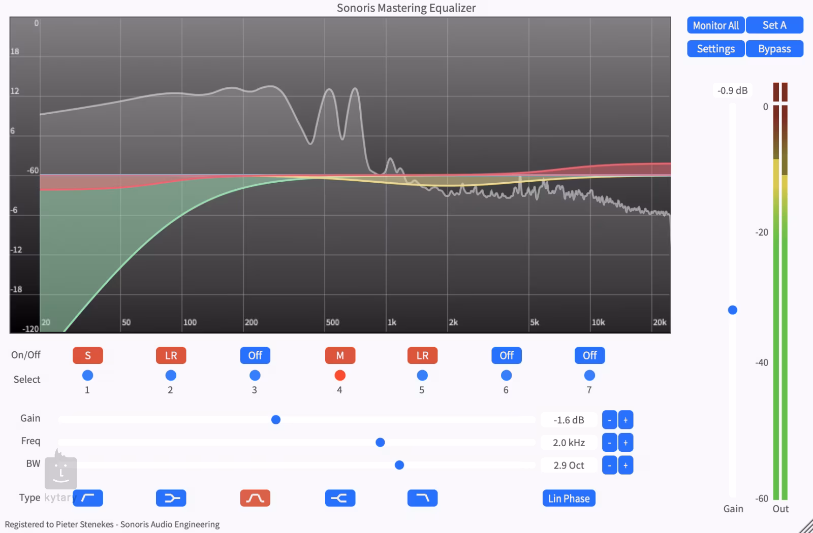 Sonoris Mastering Equalizer ist ein parametrischer Equalizer in den Formaten VST, VST3, AU und AAX für Windows und Mac. Er verfügt über eine wählbare lineare Phase oder minimale Phasenverschiebung für jedes Band. Das Plug-in eignet sich für das Mischen und insbesondere das Mastering. Der EQ enthält 7 Bänder, darunter Tiefpass-, Hochpass-, Peaking- und Shelving-Filter.