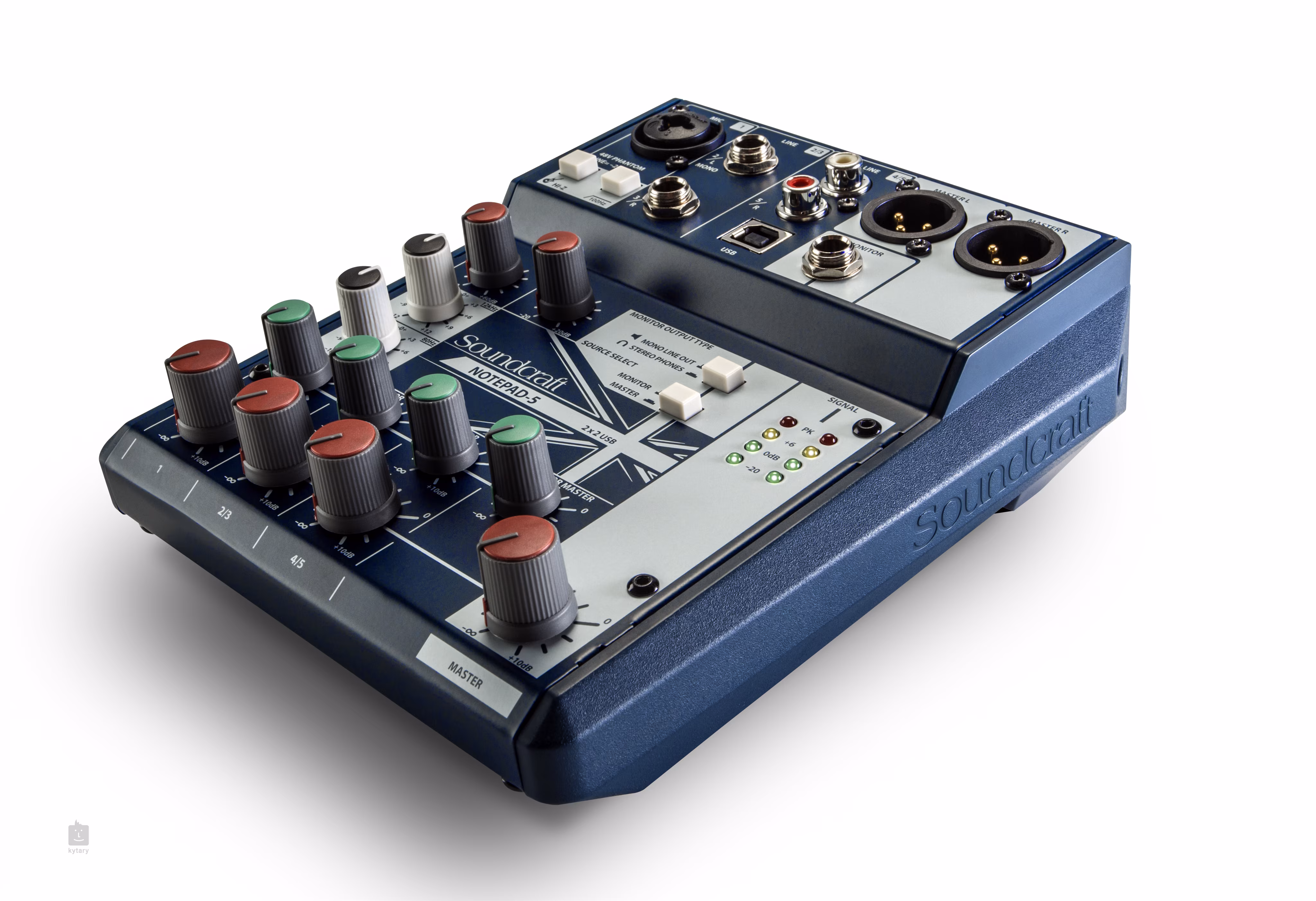 Die Mischpulte der Notepad-Serie bieten Soundcraft-Klangqualität in einem kompakten Paket. Das Mix Notepad 5 kombiniert professionelle analoge Komponenten, zuverlässige HARMAN Signalverarbeitung und eine USB-Audioschnittstelle zum Anschluss an Ihre bevorzugte Bearbeitungssoftware auf Ihrem PC oder Mac. Der Mikrofoneingang mit Kombibuchse (Klinke 6,3 mm/XLR) verfügt neben einem Zweiband-EQ über Hi-z-Schalter und einen Top-Pass-Filter (HP-Filterer). Das Mithören ist über einen Kopfhörerausgang mit separatem Lautstärkeregler möglich. Verwenden Sie das Notebook in Ihrem Heimstudio, beim Podcasting, im schlichten Tonraum oder bei Live-Auftritten.