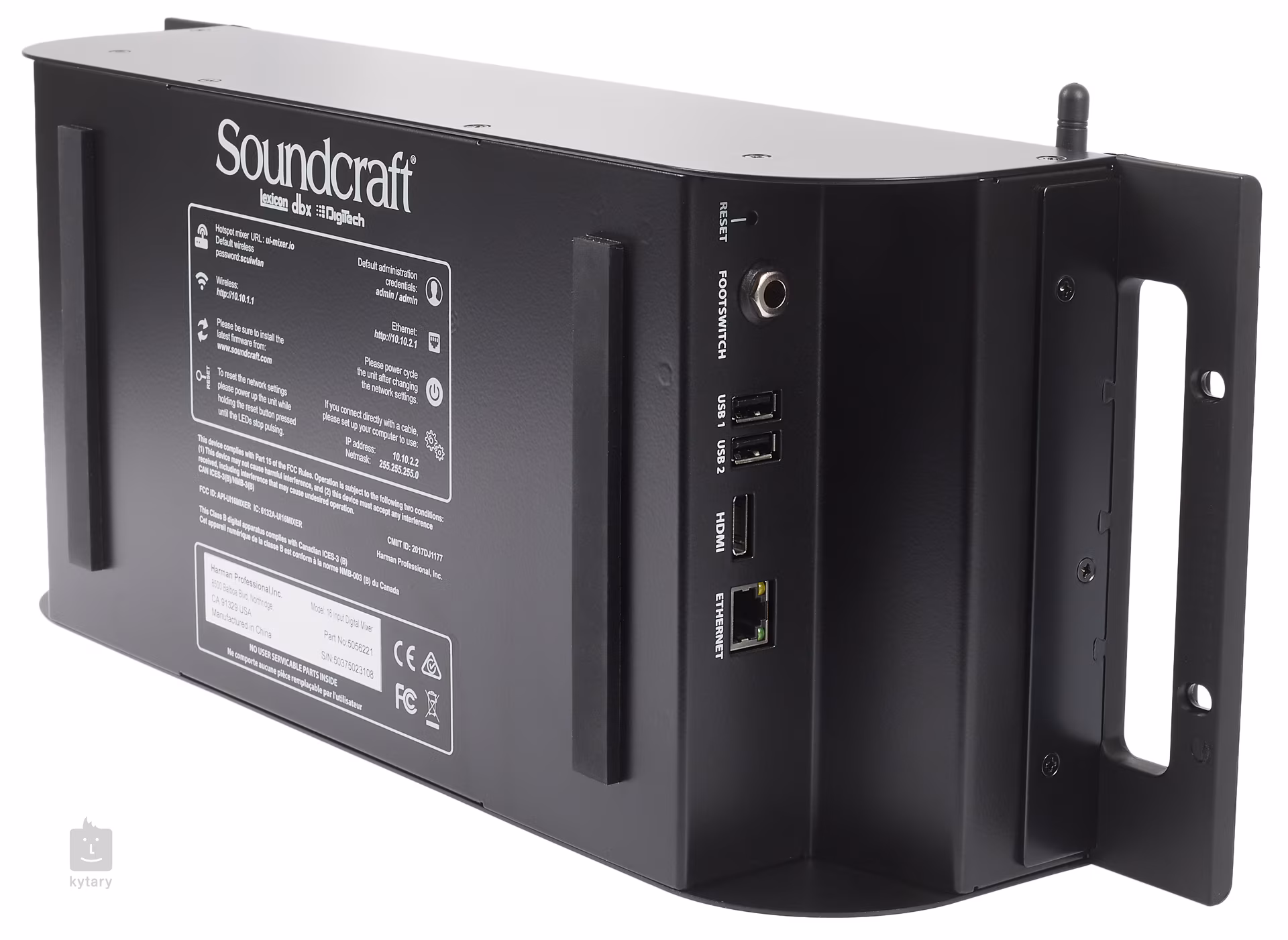 Die Gesamtzahl der Eingänge sind 8x kombinierte XLR/Klinke 6,3 mm, 4x XLR, 2x Hi-Z/Instrument und 1x Stereo RCA. Zu den Ausgängen gehören 4x Aux XLR, 2x Kopfhörer (Klinke 6,3 mm) mit Lautstärkeregler und der Haupt-Stereoausgang XLR/Klinke. Zweikanal-USB für die Wiedergabe (MP3-, WAV-, AIFF-Formate) und Direktaufnahme befindet sich auf der Vorderseite, zwei weitere USB-Schnittstellen an der Seite, wo sich auch HDMI für den Display-Anschluss befindet.