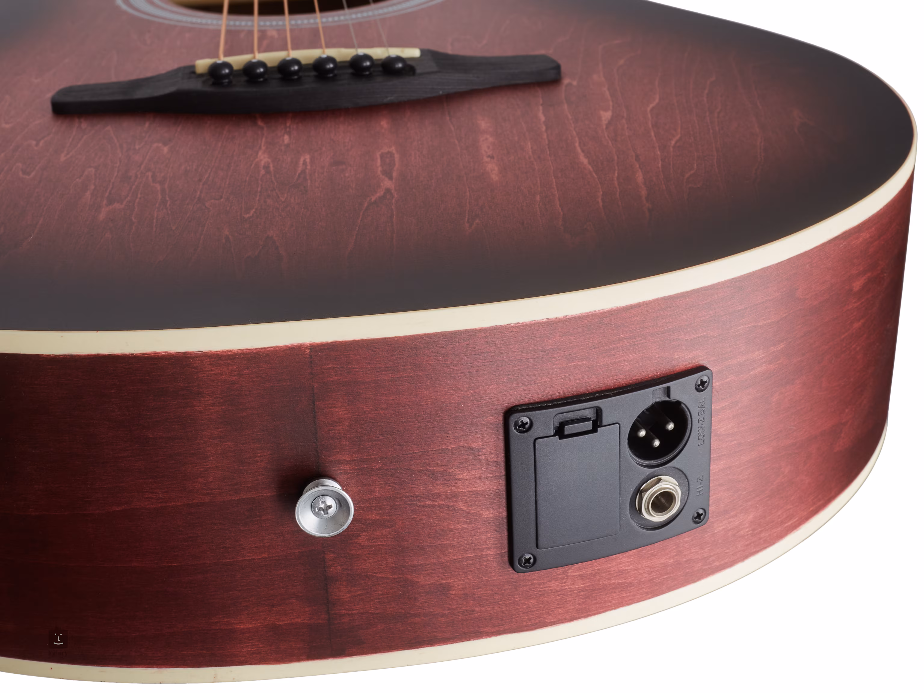 Für den Sound sorgt die aktive Elektronik E-2T mit Zweiband-Equalizer und eingebautem Stimmgerät. XLR- und 6,3-mm-Klinkenausgänge an der Gitarre sorgen für maximale Flexibilität.