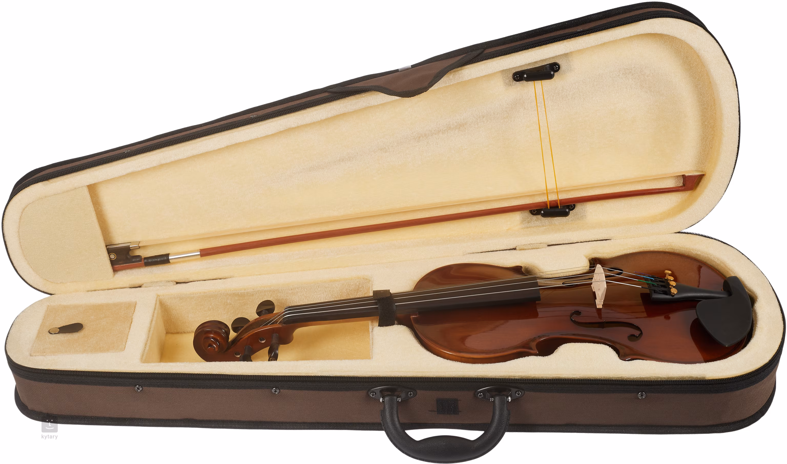 Die preisgünstige Violine ORC-34 der Marke Soundsation aus der Serie Virtuoso Orchestra ist eine hervorragende Wahl für Anfänger. Die Decke des Instruments besteht aus laminierter Fichte, der Boden und die Zargen sind aus laminiertem geflammtem Ahorn mit markanter Maserung gefertigt. Die Geige verfügt außerdem über einen Ahornhals und -steg, ein Griffbrett aus gefärbtem Holz, Ebenholz-Stimmwirbel, einen Saitenhalter aus Verbundmaterial und eine hölzerne Kinnhalterung. Das Instrument wird in einem Koffer zusammen mit einem Bogen geliefert.