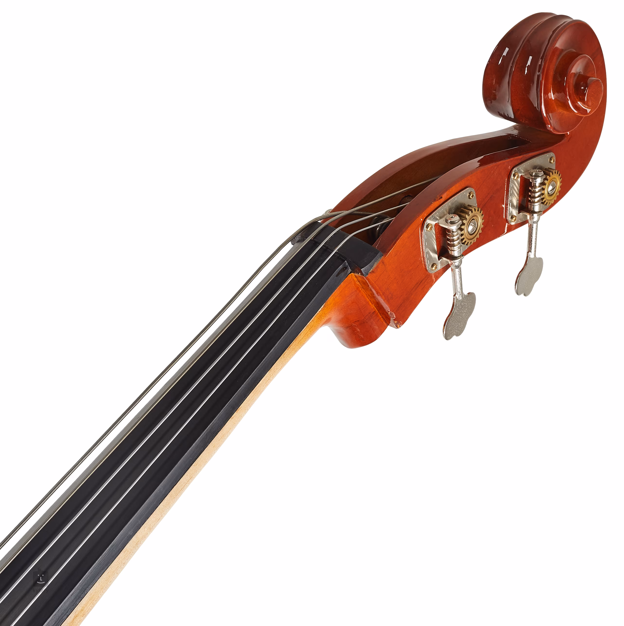 Der Korpus des Instruments ist in einer attraktiven kirschbraunen Farbe mit Randeinfassung ausgeführt, das Griffbrett ist aus Ahorn und das Griffbrett besteht aus einer Aluminiumlegierung. Das Zubehör ist ebenfalls enthalten, und der Bass wird mit einem Koffer mit Rückengurten und Kolophonium geliefert - alles, was man für den Einstieg braucht.