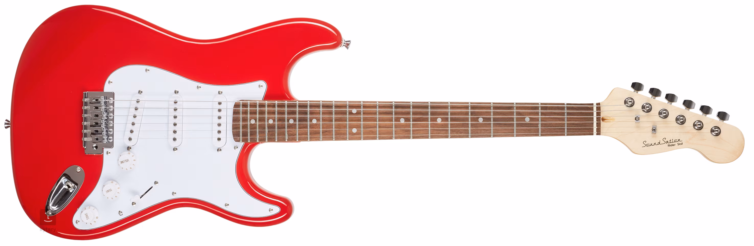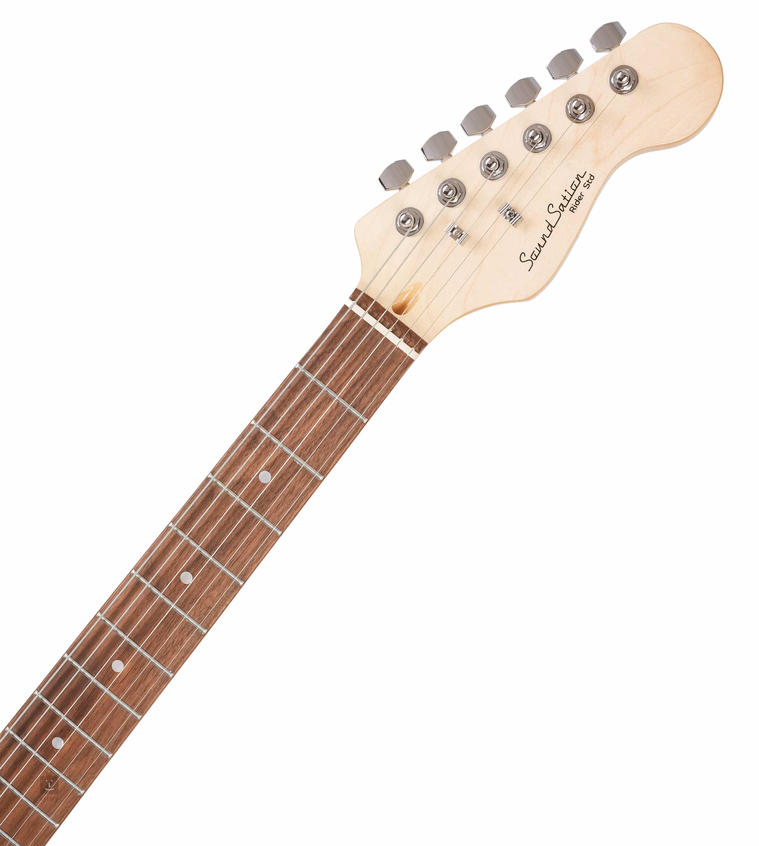 Die erschwinglichen Soundsation RIDER-STD E-Gitarren im traditionellen ST-Style Double-Cut Design sind für Einsteiger geeignet. Insbesondere die RIDER-STD-S bietet die klassischste Pickup-Konfiguration in Form von drei Singlecoils. Die wesentlichen Elemente der ST-Modelle in Form von Vintage-Tremolo, Schlagbrett, Knöpfen (1x Volume, 2x Tone) und einem fünfstufigen Pickup-Schalter dürfen nicht fehlen.
