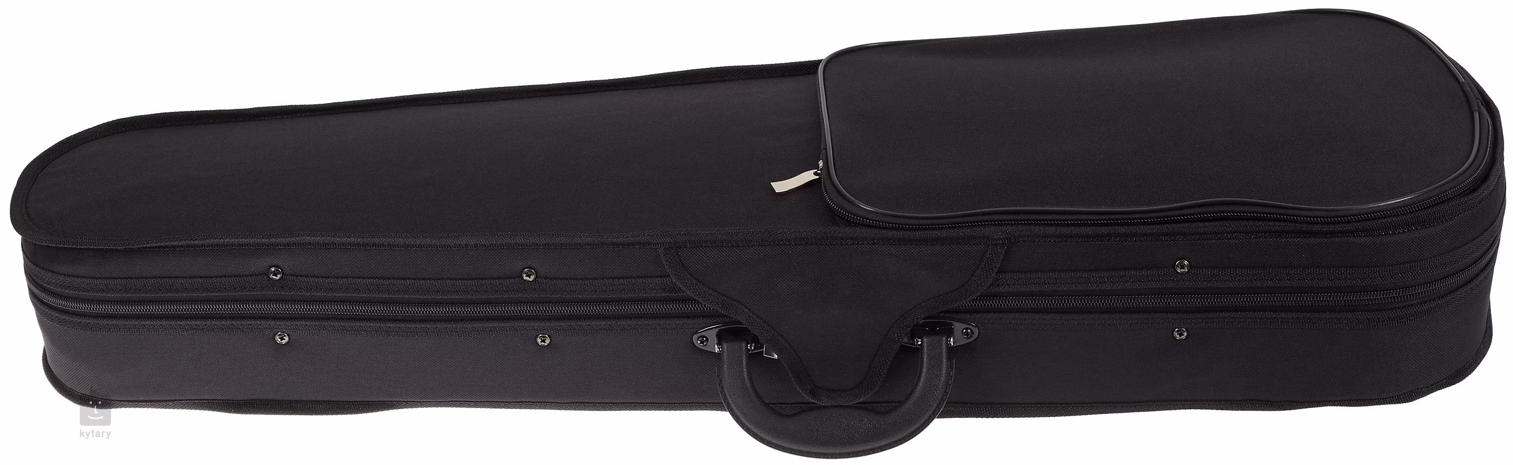Der 4/4 Geigenkoffer ist leicht, aber robust und verfügt über eine Außentasche, zwei Schulterriemen und einen stabilen Griff. Die Oberfläche ist mit Polyester beschichtet und ein stabiler Verschluss ist durch einen Doppelreißverschluss gewährleistet. Das Innenteil ist mit Samt ausgekleidet und verbirgt ein Zubehörfach und einen Schleifenhalter.
