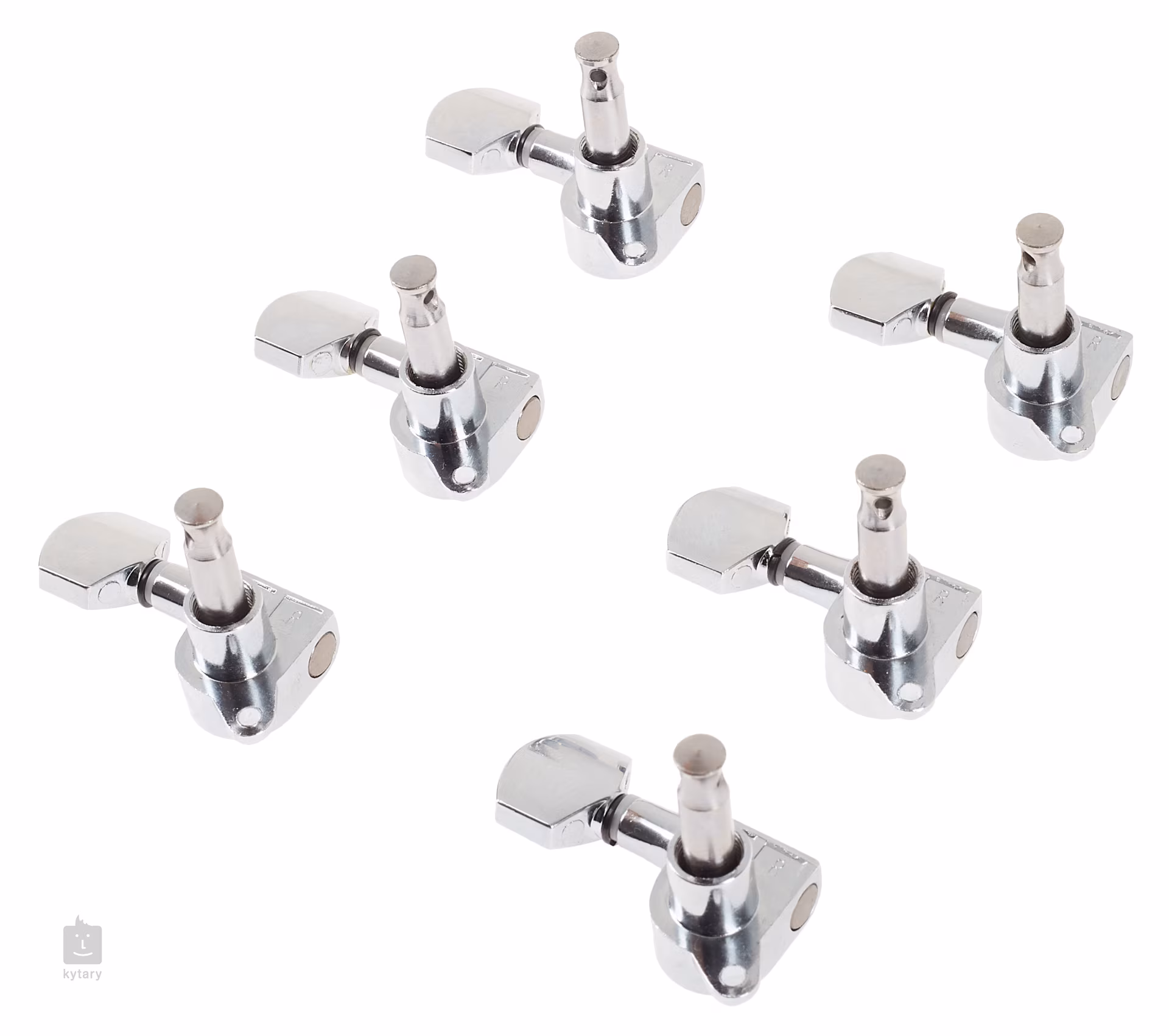 Satz verchromter Stimmmechaniken für elektrische/akustische Gitarre. Paket enthält sechs Stück (sechs in einer Reihe).