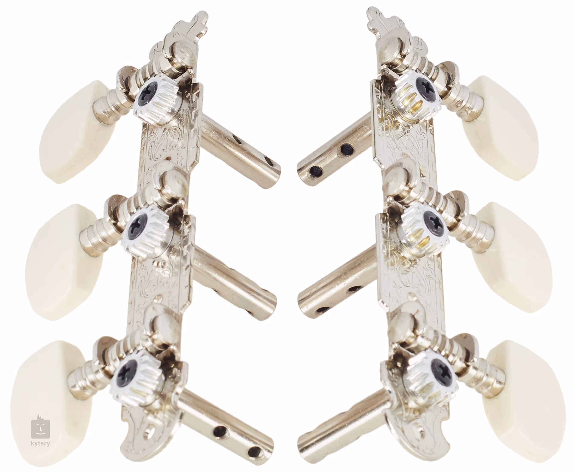 Satz verchromter Stimmmechaniken für Akustikgitarre. Pin-Abstand ist 35 mm.
