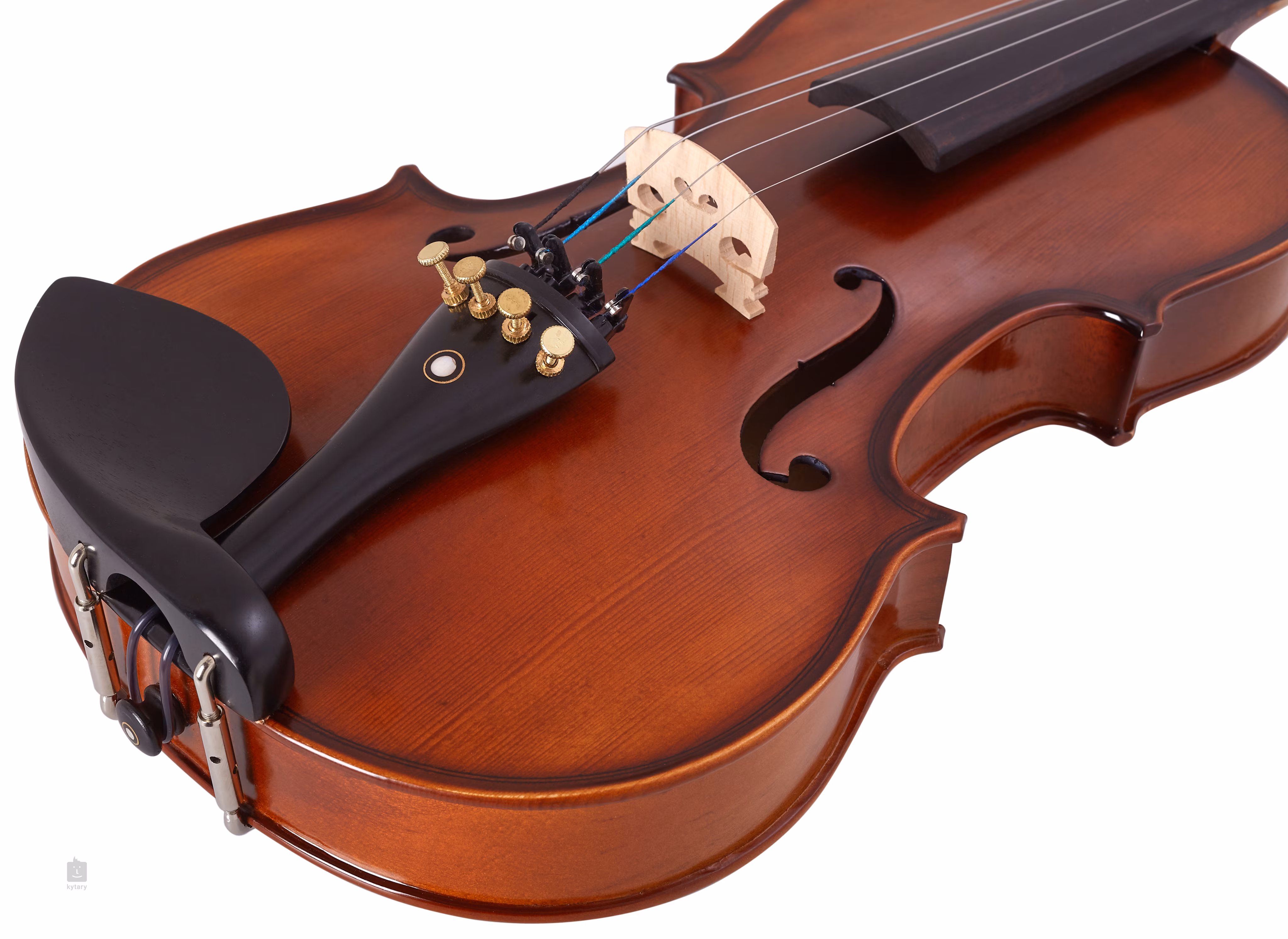 Die Geigen aus der Serie Virtuoso Student Plus sind eine hervorragende Wahl für Anfänger, die ein preisgünstiges, aber hochwertiges Instrument suchen. Die Decke ist aus massiver Fichte gefertigt, die Zargen und der Boden aus massivem Ahorn. Aus dem gleichen Material besteht auch der Steg des Instruments. Für die Herstellung des Griffbretts, der Stimmwirbel, der Kinnhalterung und des Saitenhalters wurde Ebenholz verwendet. Der Saitenhalter wird durch vier separate Stimmwirbel für eine präzisere Stimmung ergänzt. Zum Lieferumfang gehören neben einem Koffer mit Schultergurten auch ein Bogen und Kolophonium.