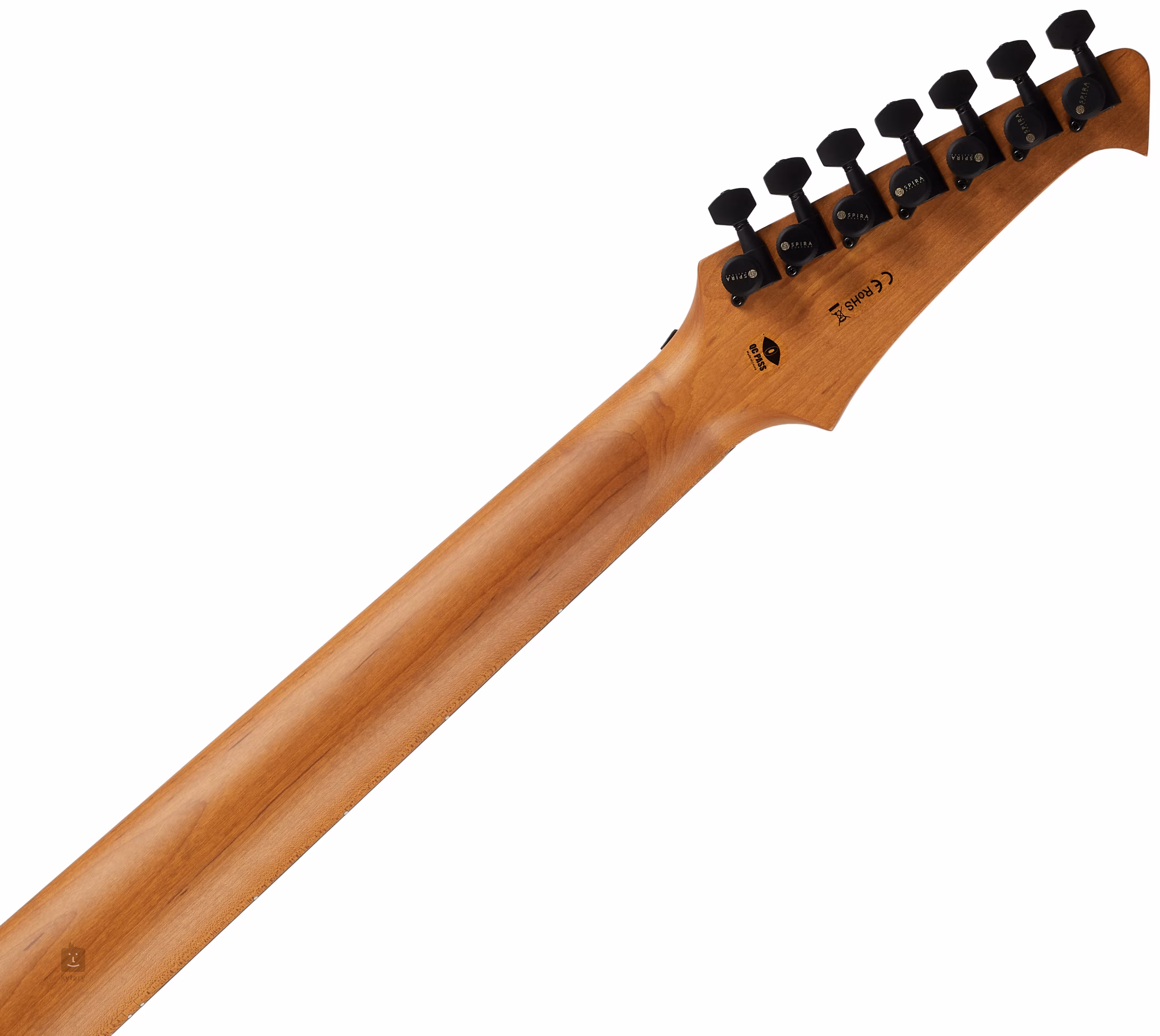 Zwei firmeneigene Spira Villain-Humbucker mit Keramikmagneten und stärkerer Ausgangsleistung verleihen der Gitarre einen satten Klang, den Sie besonders bei High-Gain-Einstellungen zu schätzen wissen werden. Die Klangregelung erfolgt über Standardregler. Die Saiten sind in firmeneigenen Locking-Mechaniken sowie in einem festen Steg und Saitenhalter verankert. Die stilvolle Verarbeitung wird durch den matten Lack und die schwarze Hardware unterstrichen.