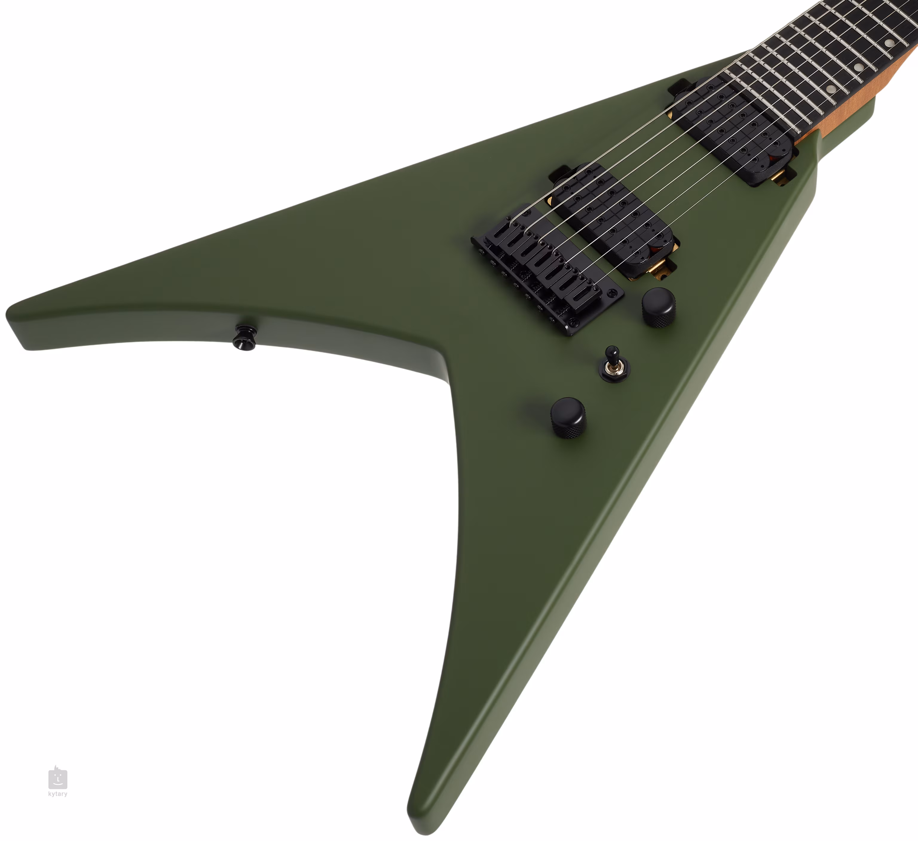 Die elektrische 7-saitige Gitarre V-407 MGR ist eine klassische „V-Form“, d. h. sie basiert auf der Form der Flying-V-Modelle. Sie verfügt über einen Korpus aus „gerösteter“ Pappel (roasted poplar), einen Hals aus kanadischem Ahorn mit „Modern D“-Profil und ein Griffbrett aus modernem Verbundmaterial im Ebenholz-Design, bestückt mit vierundzwanzig Jumbo-Bünden. Dank der thermischen Behandlung von Korpus und Hals ist das Holz der Gitarre stabiler.