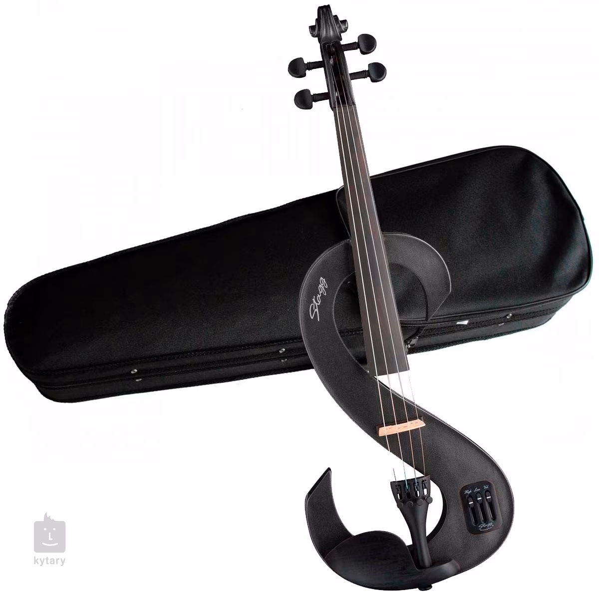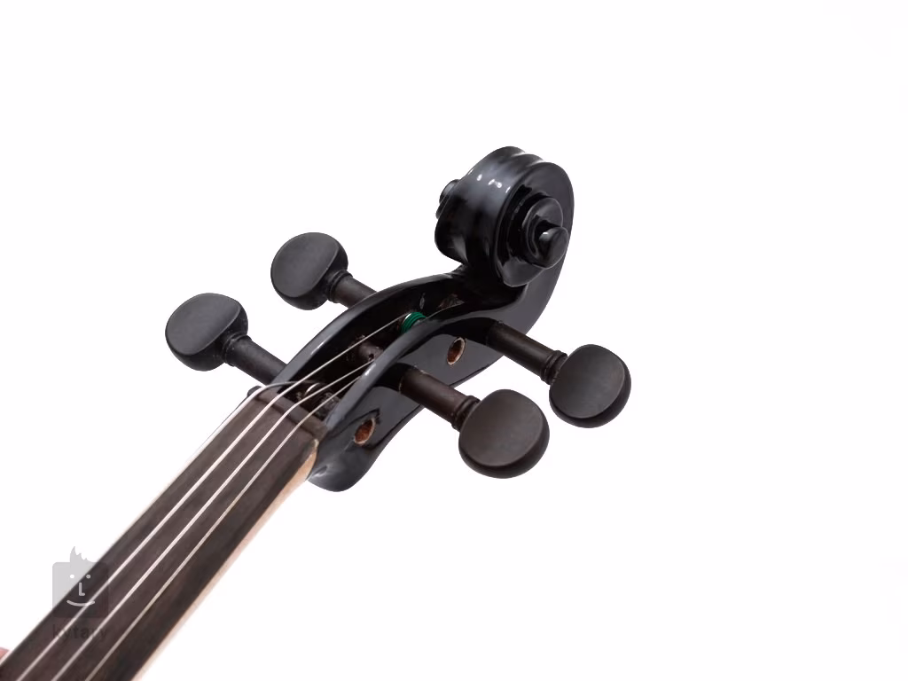 Stagg 4/4 elektrische Geige. Der Korpus ist aus massivem Ahorn gefertigt, das Instrument ist mit einem Piezo-Tonabnehmer und einem aktiven Vorverstärker ausgestattet und verfügt über einen Lautstärkeregler, einen 2-Band-Equalizer und einen Kopfhörerausgang. Sie erhalten diese schöne Geige mit einem gewagten Design inklusive Etui, Bogen, Kolophonium, Kopfhörer und 9V-Batterie.