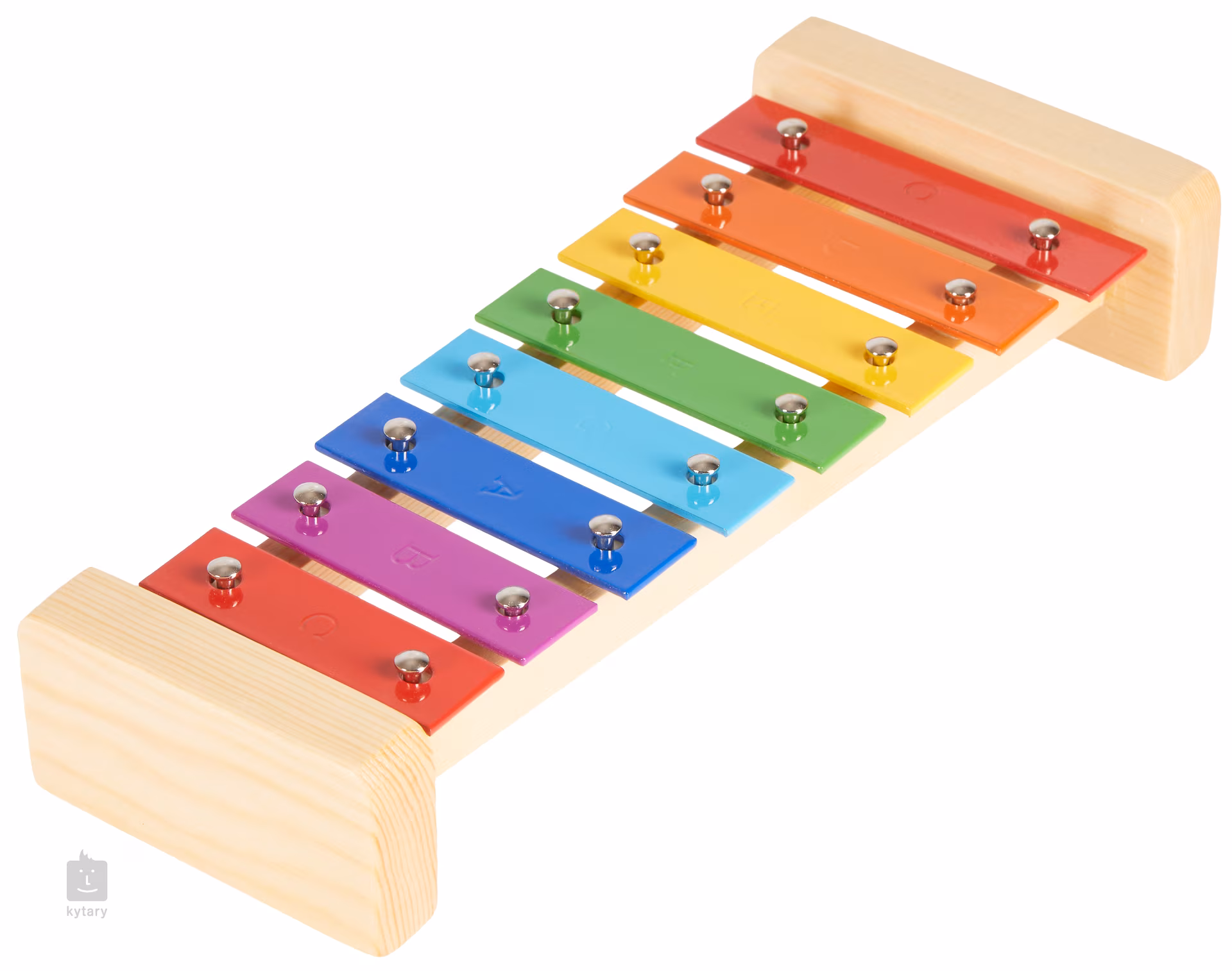 Metallophon mit acht farbigen Steinen. In attraktiver Verpackung.