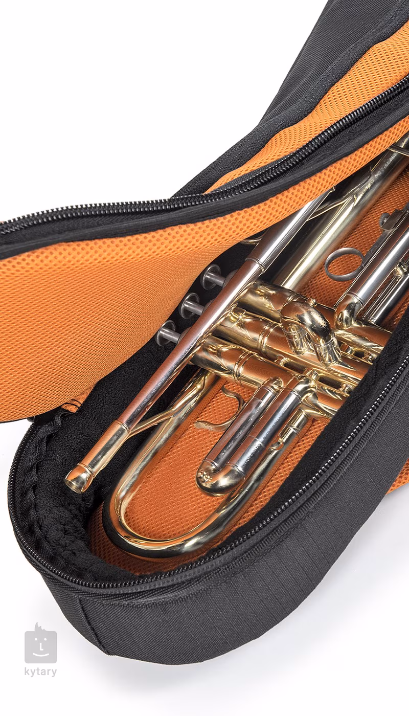 Der Stefy Line WB1000 Trumpet 1 Trompetenkoffer verfügt über eine Außenhülle aus wasserabweisendem, hochfestem Ripstop-Kunststoff, eine atmungsaktive Innenausstattung aus Stoff mit 30 mm dicker Polsterung (gehärtetes Polyethylen), eine Smartphone-Hülle, eine Tasche zur Aufbewahrung von Kleinzubehör, einen Griff für die sichere Handhabung des Koffers und gepolsterte Schultergurte, so dass er auch als Rucksack getragen werden kann.
