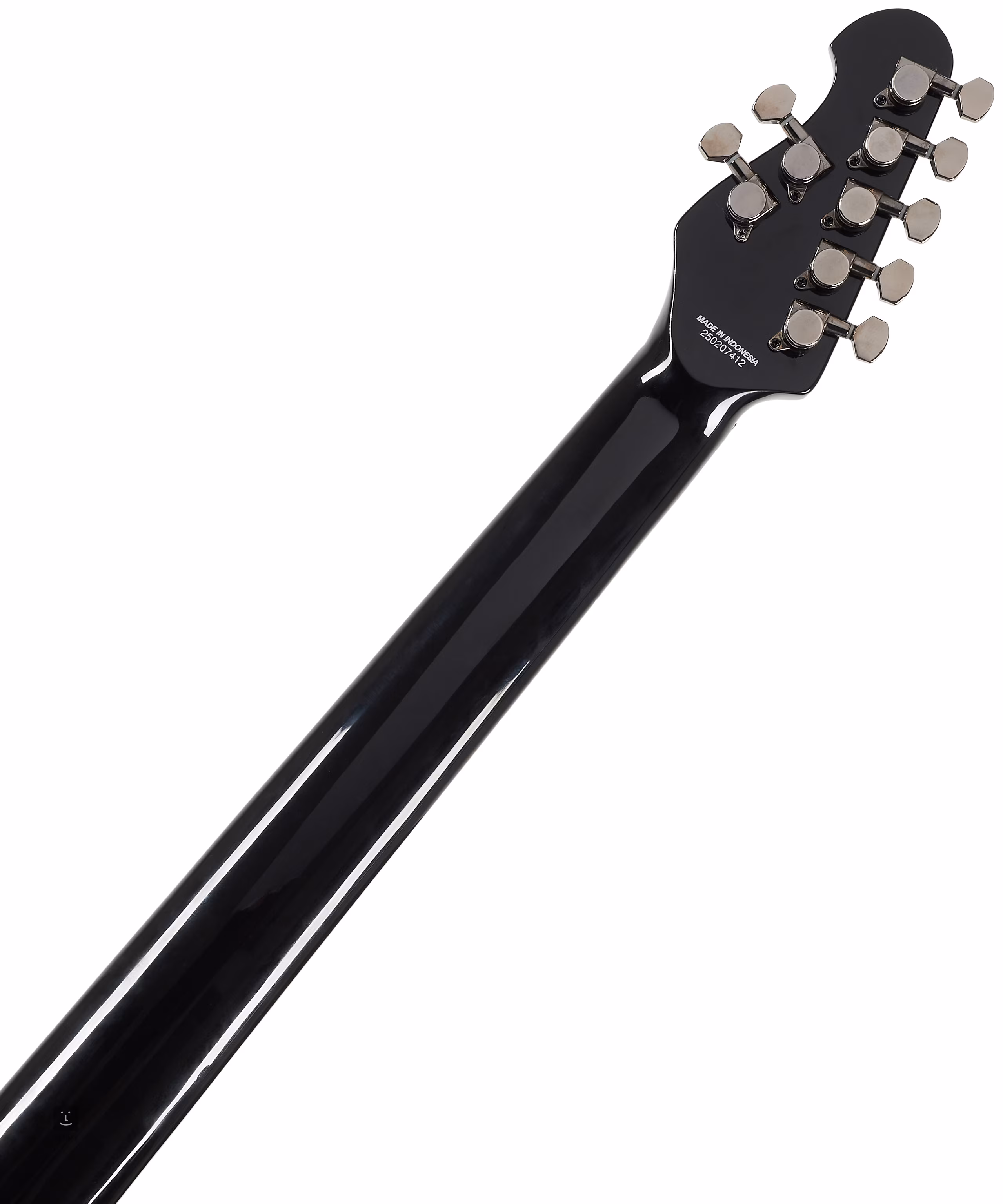 Die Saiten sind in der hauseigenen Locking-Mechanik und einem modernen Tremolo gelagert. Die schöne Verarbeitung wird durch das JP Shield Inlay am ersten Bund akzentuiert.
