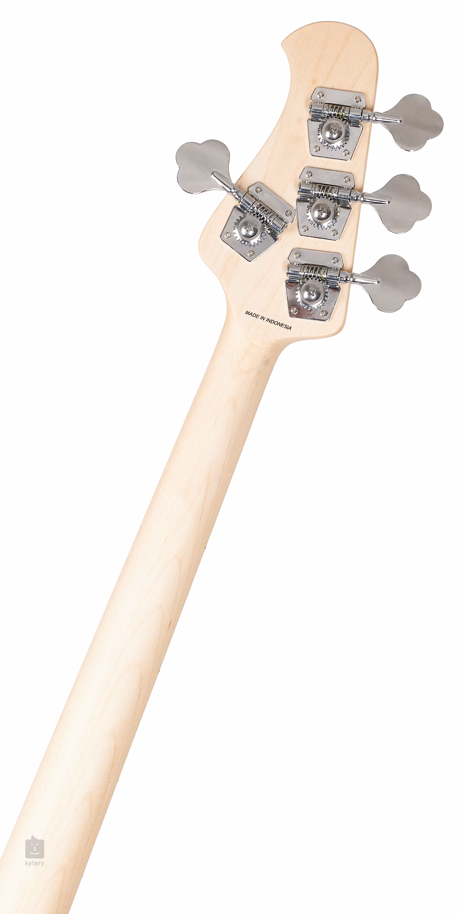 Der Korpus dieses Basses ist aus massivem Pappelholz gefertigt. Der Hals, der mit sechs Schrauben mit dem Korpus verschraubt ist, ist aus extrahartem Ahornholz gefertigt. Die Mensur beträgt klassische 864 mm, es gibt 21 Bünde und die Breite des Nullbundes beträgt 38 mm. Das Instrument ist mit zwei Humbucker-Tonabnehmern ausgestattet, die von Music Man entwickelt wurden. Sie können zwischen ihnen mit einem Fünf-Positionen-Schalter umschalten. Das Instrument verfügt über einen aktiven Zweiband-Vorverstärker, bei dem Sie natürlich neben den Bässen und Höhen auch die Gesamtlautstärke einstellen können.