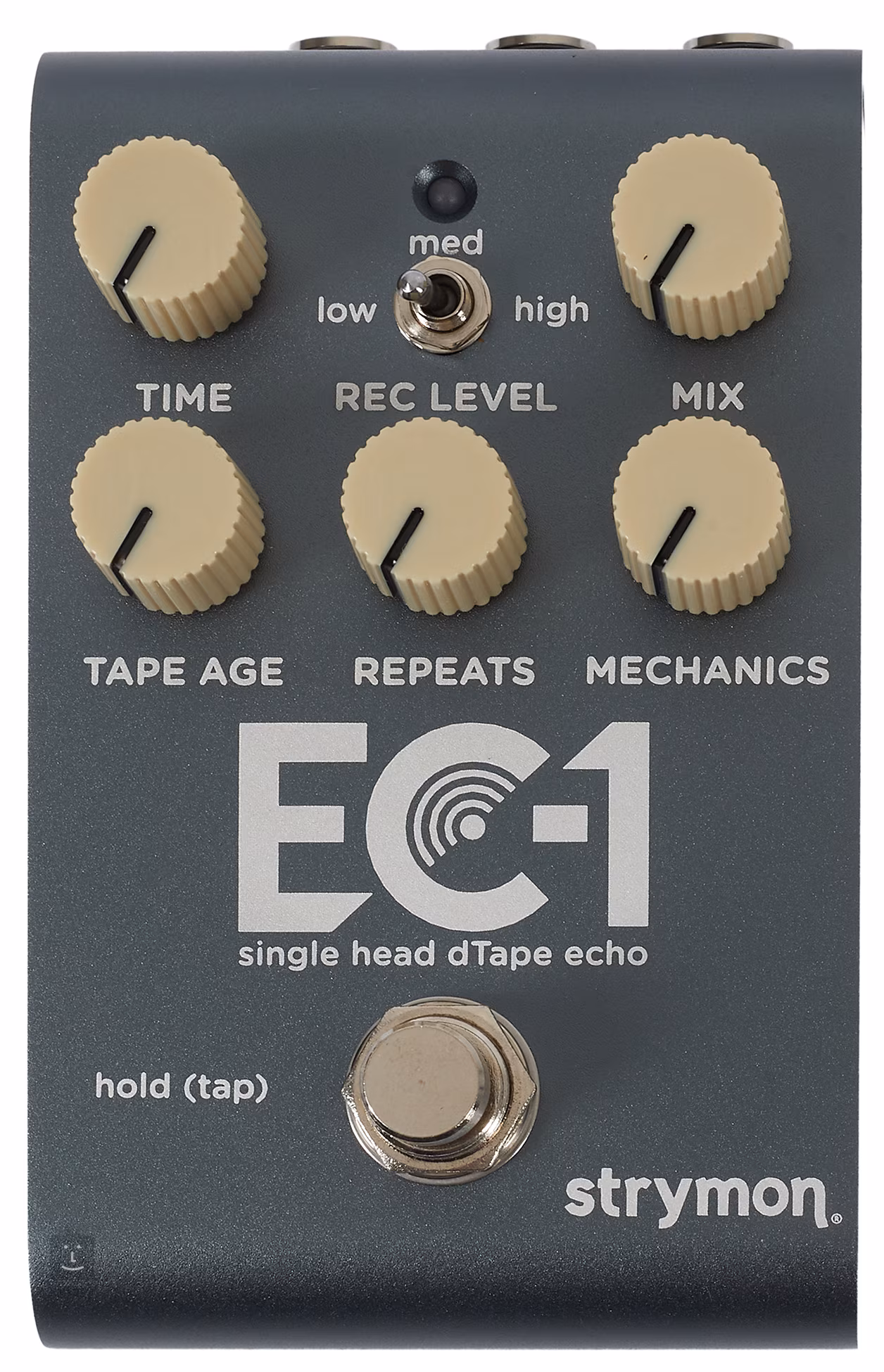 Mit dem Strymon EC-1 Gitarreneffekt können Sie ein authentisches Bandecho erzeugen, das durch die reichen Harmonien eines Röhrenvorverstärkers ergänzt wird. Sein Sound versetzt Sie sofort in die 1960er Jahre, als Gitarrengrößen wie Eric Clapton, Stevie Ray Vaughan, Neil Young und Keith Richards die Musikszene beherrschten. Diese Box wurde von einem außergewöhnlich gut erhaltenen Echoplex EP-2 Tape Echo inspiriert, das von dem bekannten Ingenieur Cesar Diaz bearbeitet wurde. Er modifizierte und optimierte das Gerät absichtlich in eine völlig einzigartige Form - seine Modifikationen sollten die besten Eigenschaften verschiedener Vintage-Echoplex-Modelle kombinieren, um das ultimative Gerät mit dem bestmöglichen Klang zu schaffen. Es war dieses Modell, das die Entwicklung des EC-1 maßgeblich beeinflusste und ihm seinen unnachahmlichen Vintage-Charakter verlieh.