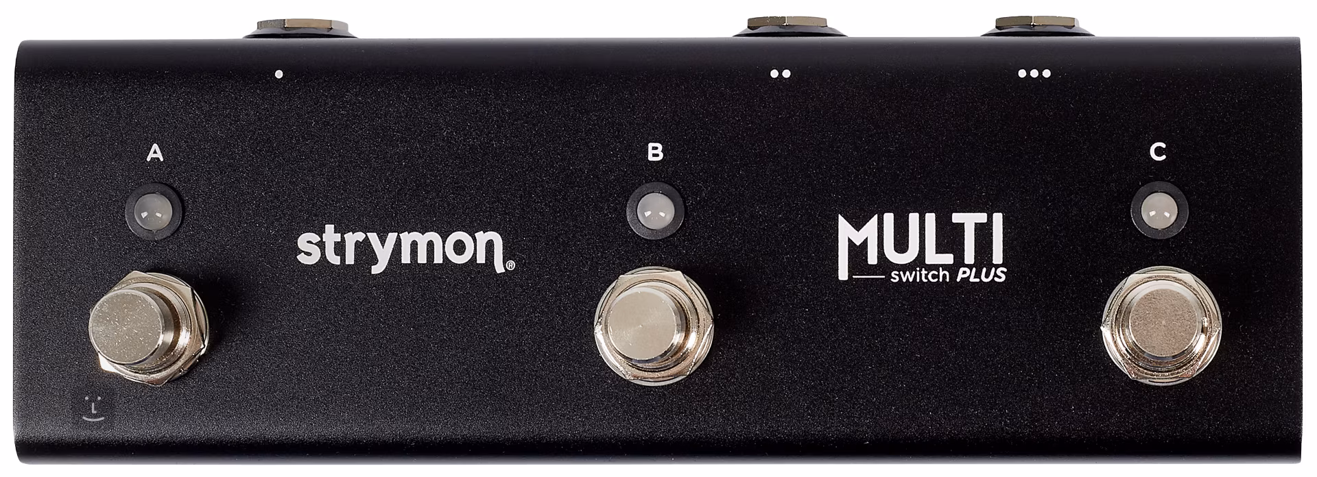 MULTIswitch Plus ist ein Multifunktions-Fußschalter für kompatible Strymon-Pedaleffekte, mit dem Sie Presets einzelner Effekte (Sunset, Riverside, Volante) aktivieren und deren Datenbank durchsuchen können (TimeLine, BigSky, Mobius), als 3-6-Regler-Looper (TimeLine) verwenden und Tap Tempo (BigSky, Deco, DIG, Flint, Mobius, TimeLine, Volante), Fav (Brigadier, Deco, DIG, El Capistan, Flint, Lex, Riverside, Sunset), Boost (Riverside) und Speed (Lex) steuern.