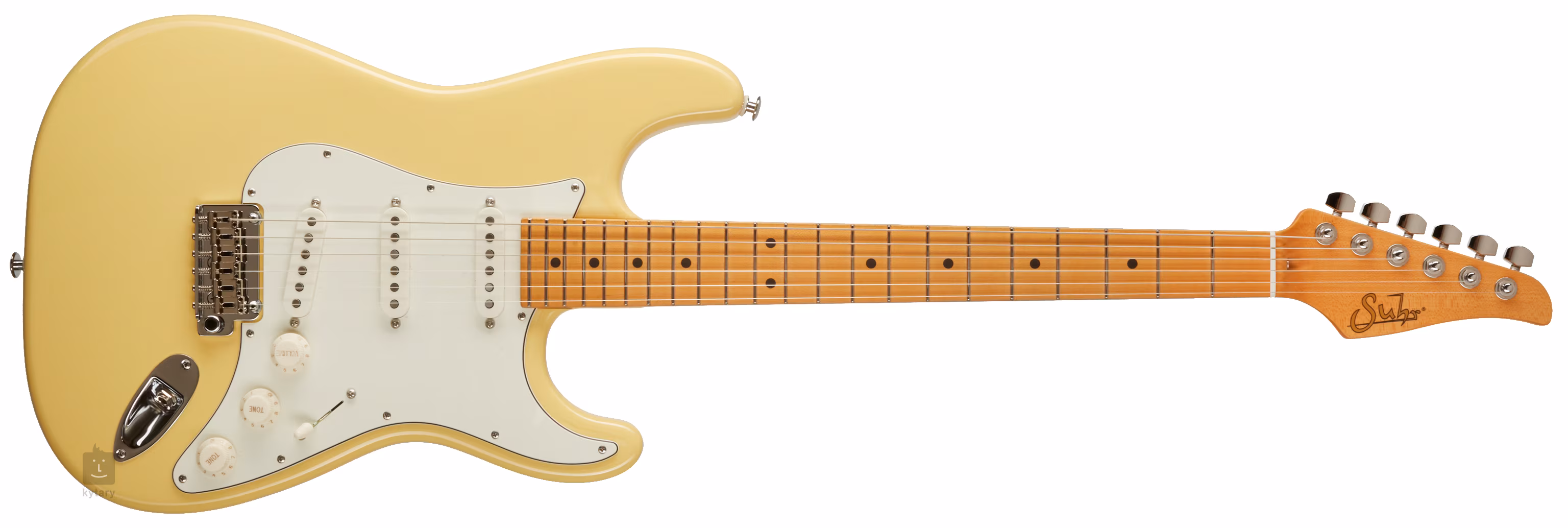 Drei Suhr V60LP Single-Coil-Tonabnehmer mit Alnico V "Special"-Magneten verleihen der Gitarre einen herrlich sauberen Sound mit modernem Strat-Griffbrett "made by Suhr" - und dank SSCII-Technologie völlig frei von den charakteristischen, störenden Single-Coil-Geräuschen. Zu den Standard-Klangeinstellungen gehören ein Lautstärkeregler, zwei Klangregler und ein Tonabnehmerschalter mit fünf Positionen.