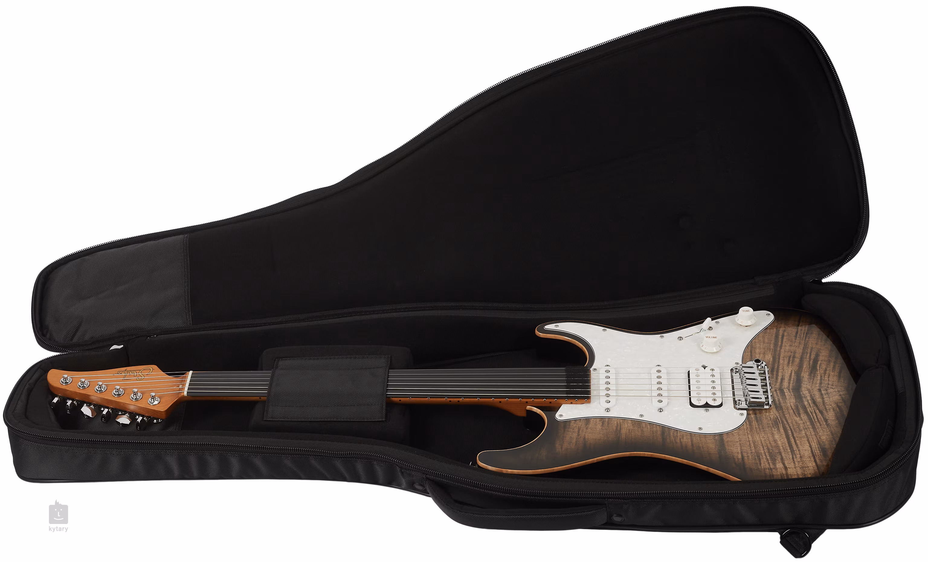 Stimmstabilität, exzellentes Sustain und schnelle Saitenwechsel werden durch die TusQ Zero-Fret-Saitenbefestigung im 18:1-Verhältnis und das 2-Punkt-Tremolo des Unternehmens garantiert.