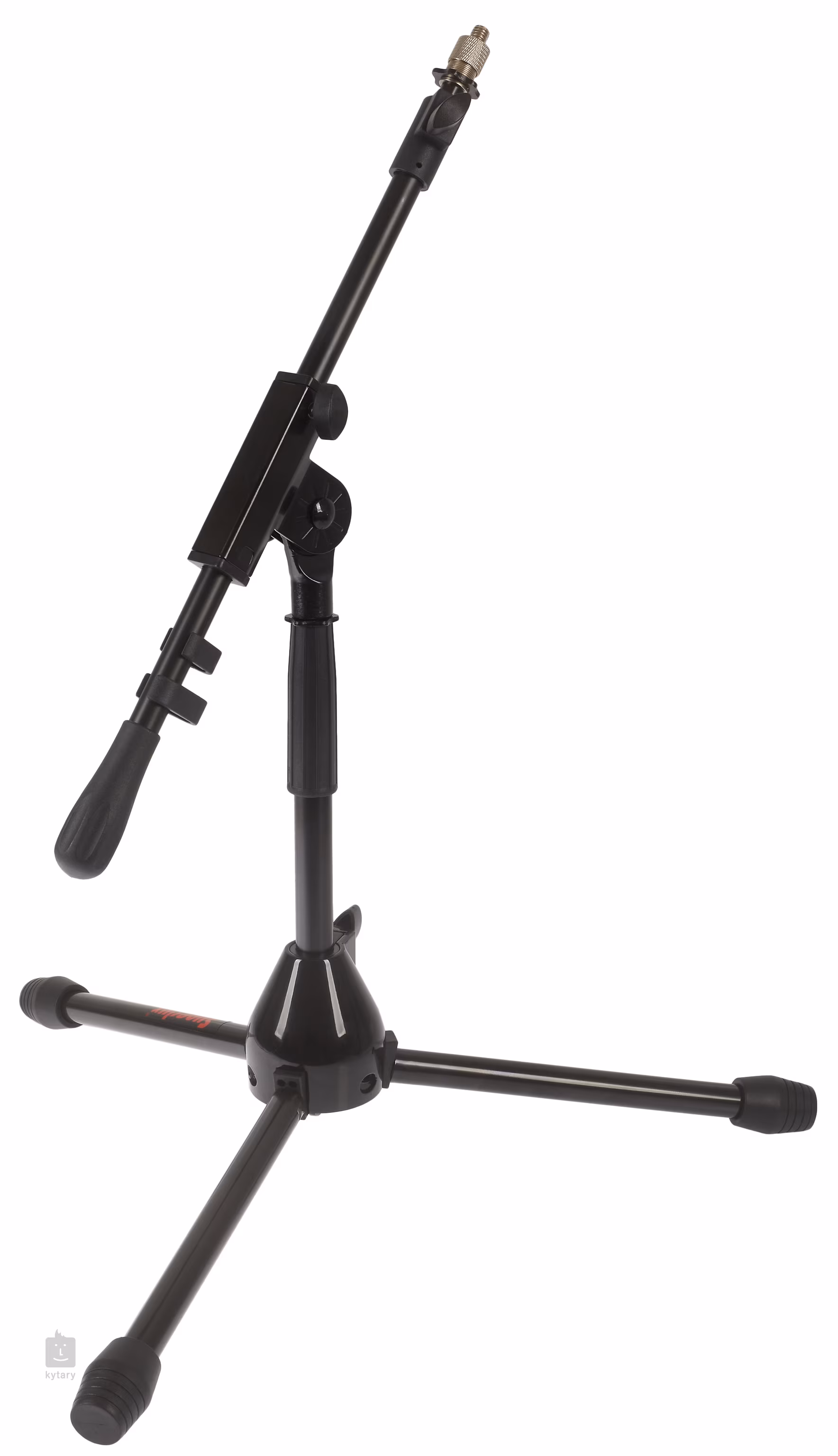 Unterer Mikrofonständer mit Arm, stabiler Basis und leicht verstellbarer Höhe. Er ist aus Metall gefertigt und der Sockel besteht aus einer Zinklegierung, die maximale Haltbarkeit und geringes Gewicht garantiert. Die Länge des Arms ist von 45-80 cm einstellbar. Zum Lieferumfang gehören auch ein 3/8"-5/8"-Gewindeadapter und eine Tragetasche.