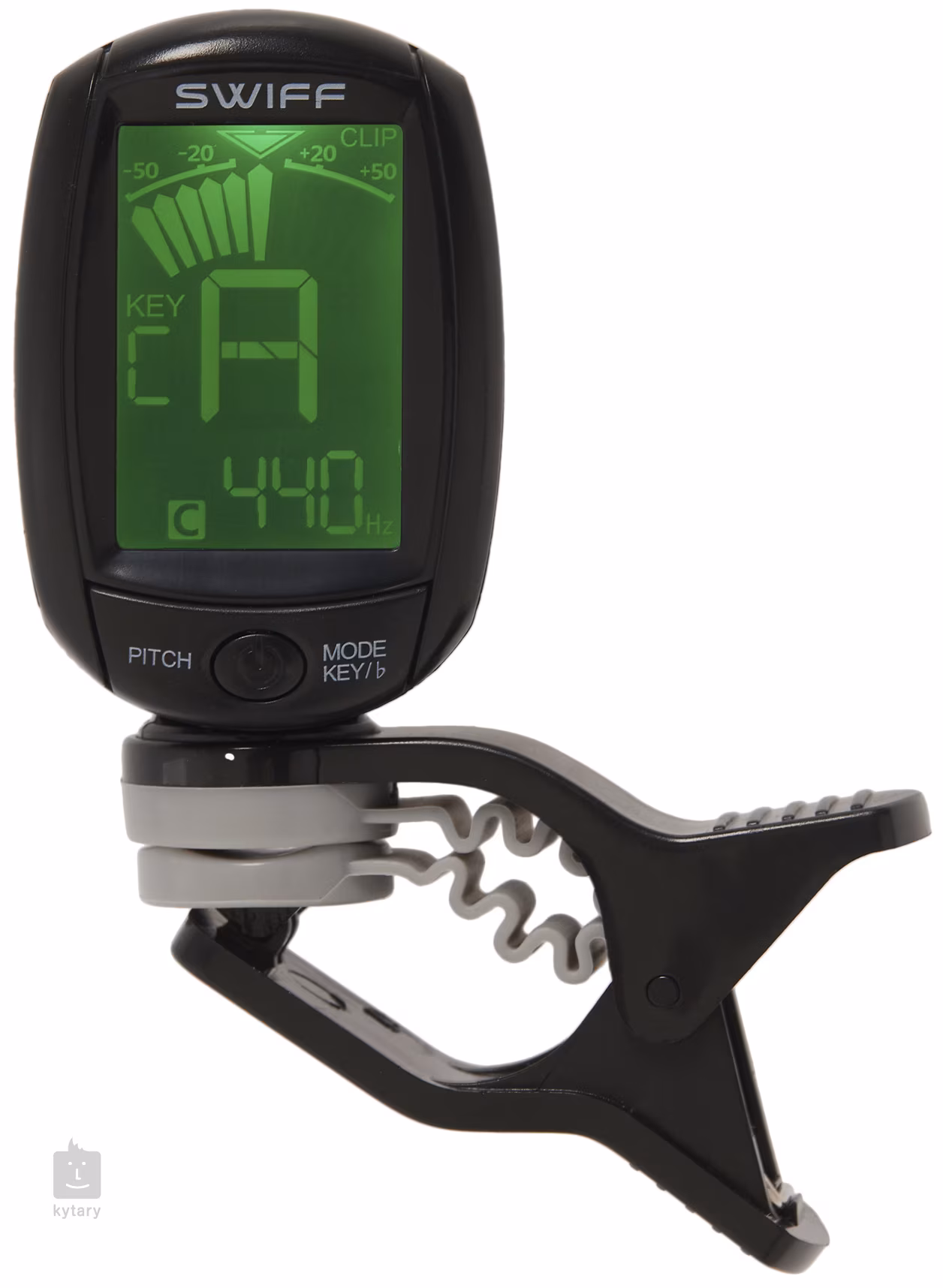 Das Swiff A3 ist ein Clip-on-Stimmgerät mit übersichtlichem Display, das neben der Standardstimmung per Instrumentenvibration auch die Stimmung per Mikrofon ermöglicht. Es hat fünf Modi - neben dem klassischen chromatischen Modus bietet es Modi zum Stimmen von Gitarre, Ukulele, Bass und Geige. Es stimmt Töne im Bereich A0-C8 und hat eine einstellbare Frequenz von 410-490 Hz. Außerdem können Sie die Tonart ändern. Die Stromversorgung erfolgt über eine CR2032-Batterie.