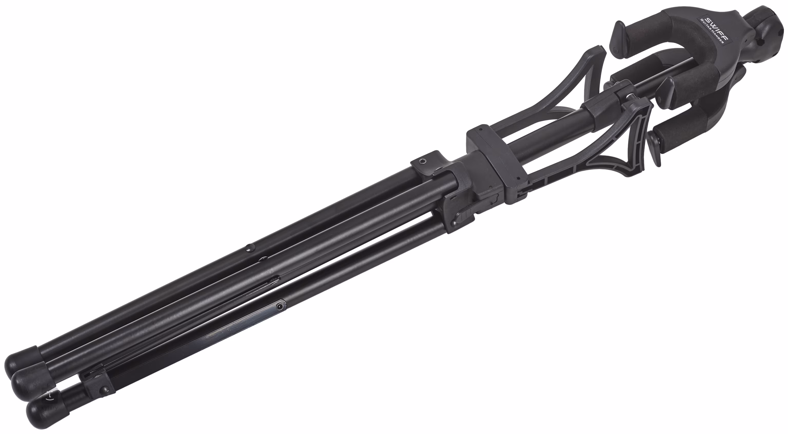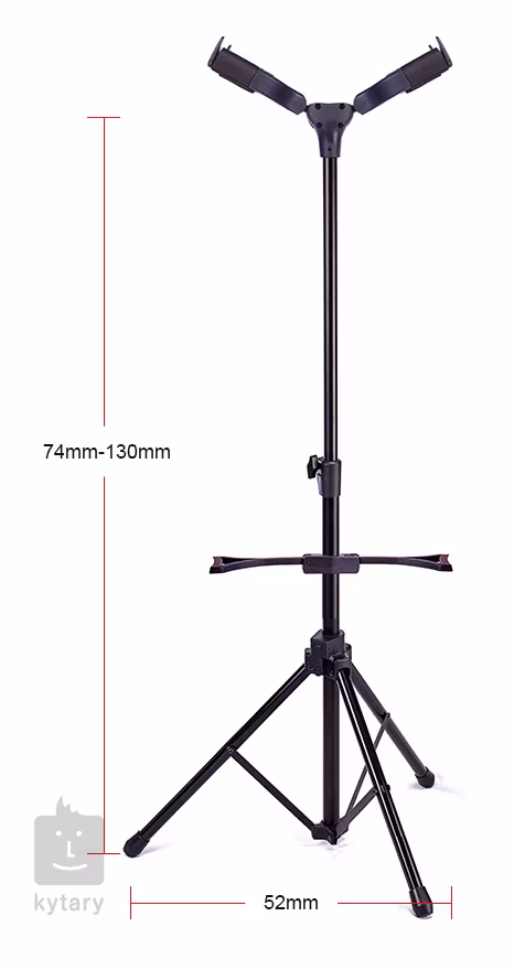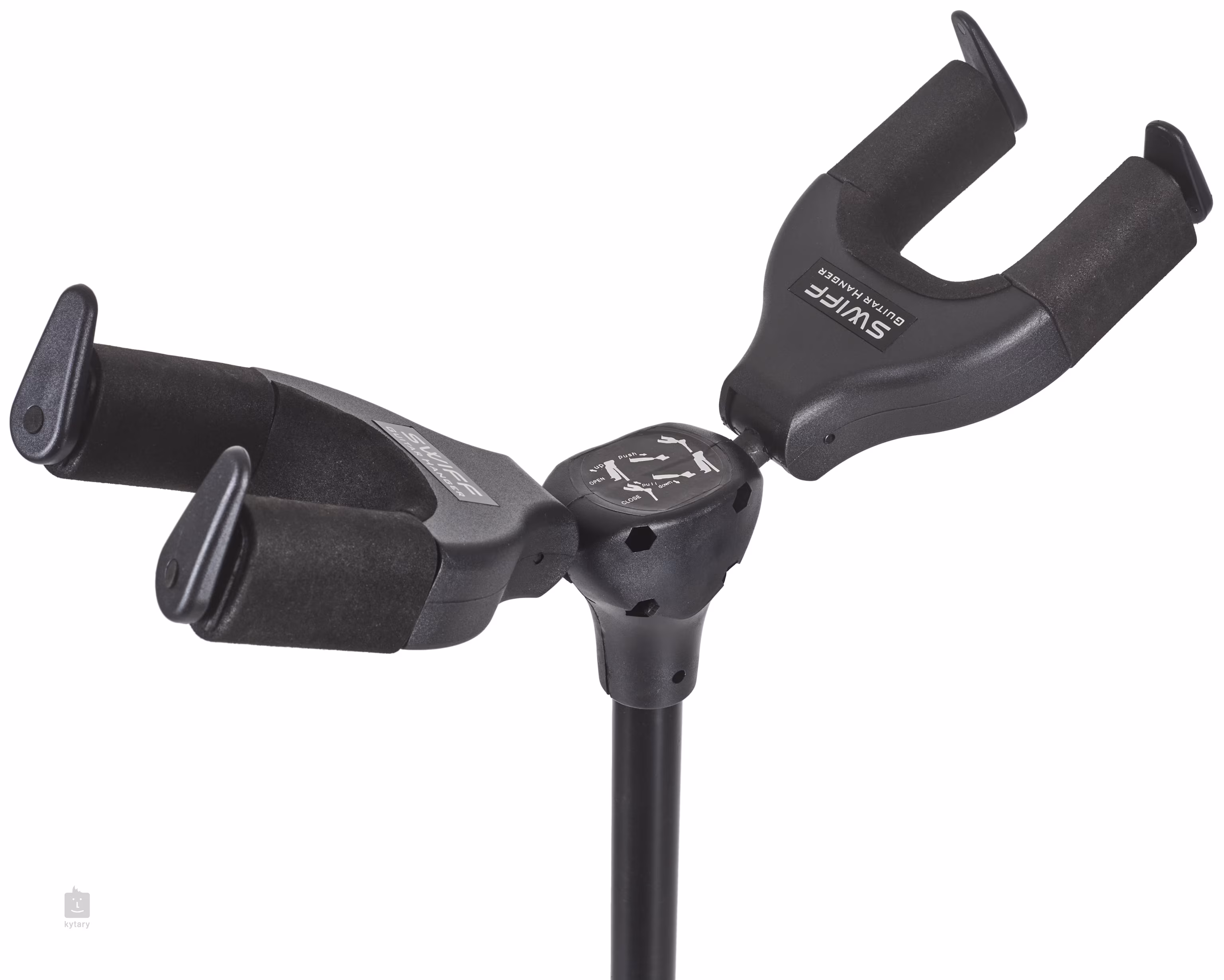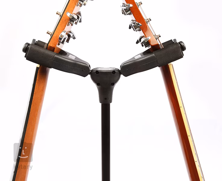 Der Swiff U4-C Gitarrenständer ist ein doppelseitiger Dreibeinständer, mit dem Sie zwei Instrumente gleichzeitig aufhängen können. Er ist faltbar und stabil, so dass Ihre Gitarren immer griffbereit und sicher sind. Beide Köpfe des Ständers sind mit Schutzverschlüssen versehen, die sich automatisch schließen, wenn Sie Ihre Gitarre einlegen, damit sie nicht herunterfällt und möglicherweise beschädigt wird. Sie sind außerdem mit weichem Schaumstoff ausgekleidet, so dass Sie sich keine Sorgen um Kratzer machen müssen. An der Unterseite ruhen die Gitarren auf Gummiverlängerungen. Der Ständer ist sowohl für akustische als auch für elektrische Gitarren geeignet.