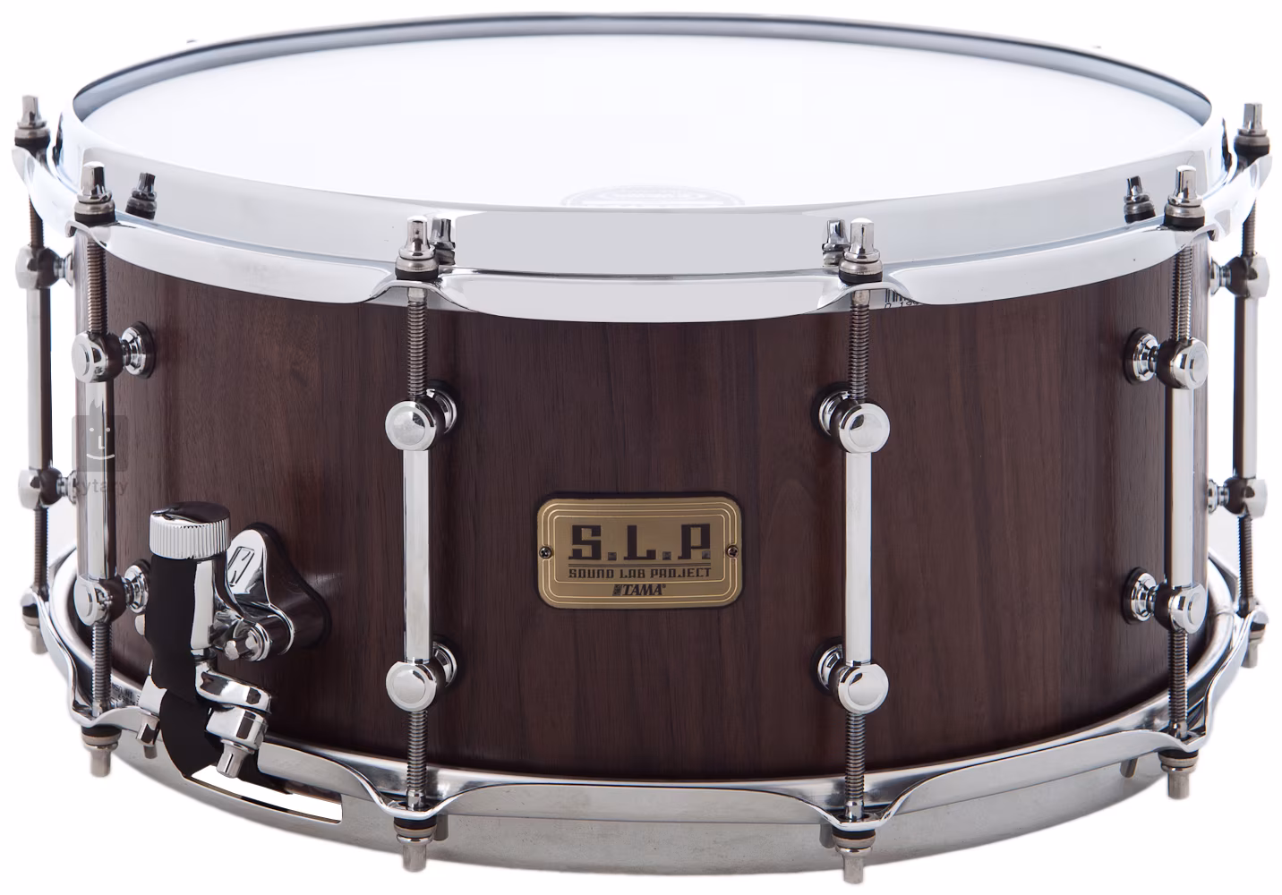 Der Korpus dieser Snare Drum besteht aus zehn Lagen 100% Walnuss, ist 9 mm breit und extra stark. Das Walnussholz hat ein sehr dunkles Grundtimbre und diese Snare Drum bietet einen sehr tiefen und komplexen Ton mit außergewöhnlichem Attack.