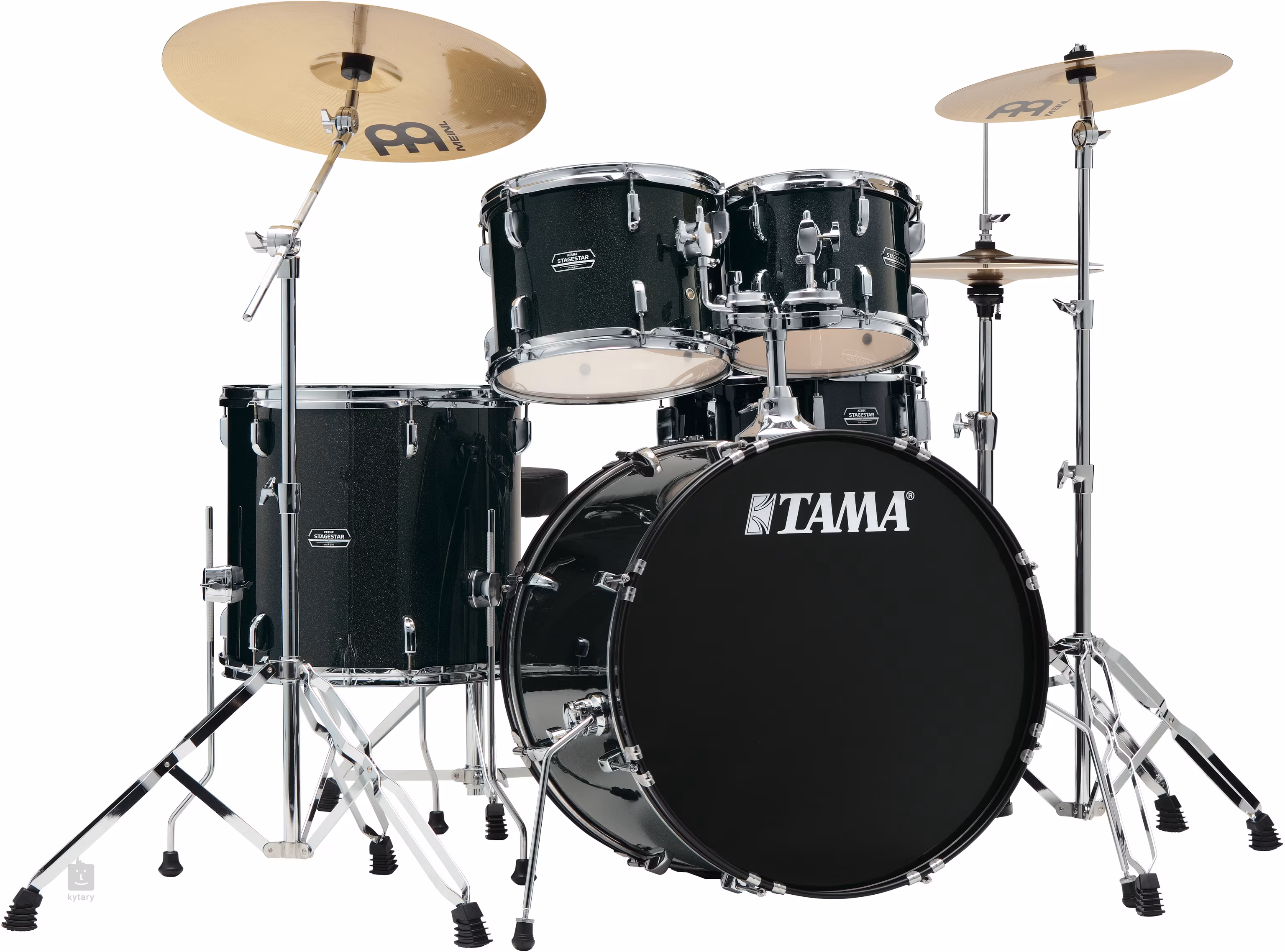 Zum Tama ST52H6 gehört auch eine komplette Hardware-Ausstattung mit doppelt verstärkten Ständern, die auch bei energischem Spiel für hohe Stabilität sorgen. Das Drum-Pedal verfügt über einen doppelten Kettenantrieb und eine einstellbare Beater-Neigung, wodurch die Reaktion je nach Spielstil fein abgestimmt werden kann. Das Paket wird durch ein Meinl Cymbals BCS-Becken-Set ergänzt, das ein 20'' Ride, ein 16'' Crash und ein 14'' Hi-Hat enthält.